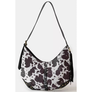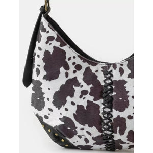 Fame Cow Print Hobo Shoulder Bag with Studded Details