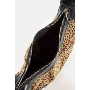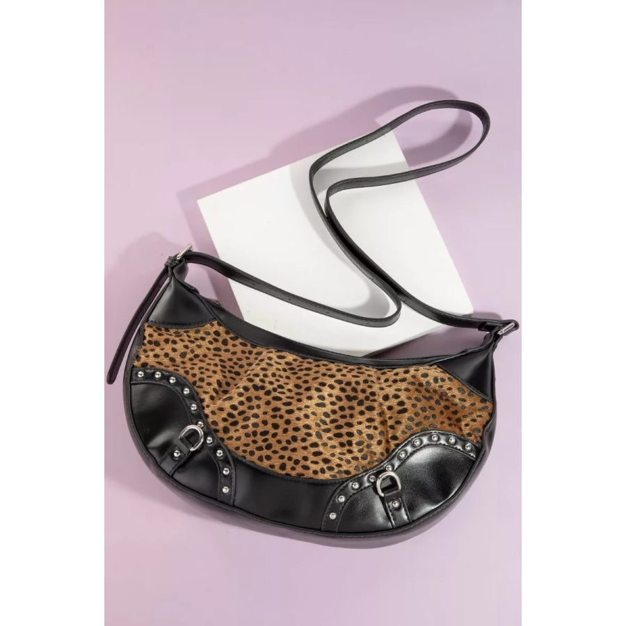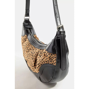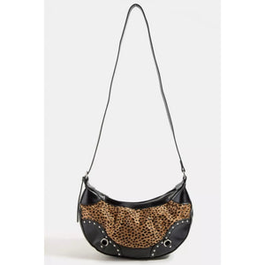 Fame Dark Spotted Leopard Print Half Moon Shoulder Bag