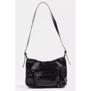 This elegant black leather shoulder bag combines style and functionality with its premium genuine leather construction and classic hobo design. Features an adjustable shoulder strap for comfortable wear, spacious main compartment for all your essentials, and a convenient front zip pocket for quick access to frequently used items. The sleek black finish and minimalist aesthetic make it perfect for both casual and professional settings. Crafted with durable hardware and soft supple leather that develops beautiful patina over time. This versatile bag offers the perfect balance of sophistication and practicality for the modern woman.