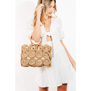 The Intricate Braided Wheels Handbag is a stunning accessory designed with intricate braided detailing in the shape of wheels. This handbag exudes a unique and artistic charm, making it a statement piece for any outfit. The braided design adds texture and visual interest to the bag, creating a striking and fashionable look. Carry your essentials in style with this beautifully crafted Intricate Braided Wheels Handbag.