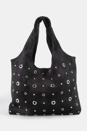 Fame Large Grommeted Suede Shoulder Bag
