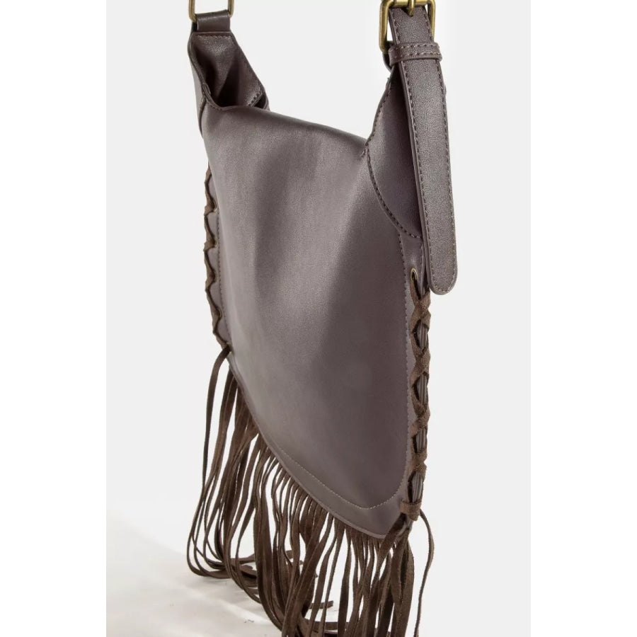 This stylish shoulder bag combines bohemian flair with practical design. Crafted from high-quality faux leather and suede, it features eye-catching fringe detailing and studded accents for a unique, vintage-inspired look. The adjustable shoulder strap ensures a comfortable fit, while the spacious interior provides ample room for your essentials. Perfect for everyday use or special occasions, this bag adds a touch of personality to any outfit. The flap closure keeps your belongings secure, and the durable construction ensures long-lasting wear. A must-have accessory for the fashion-forward individual.