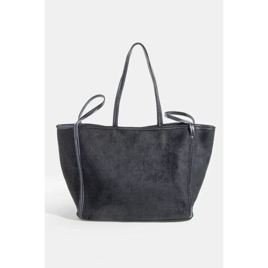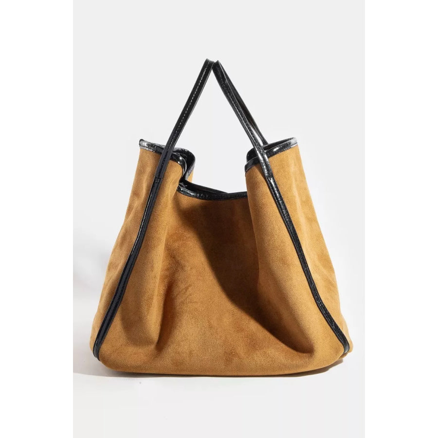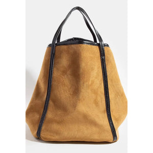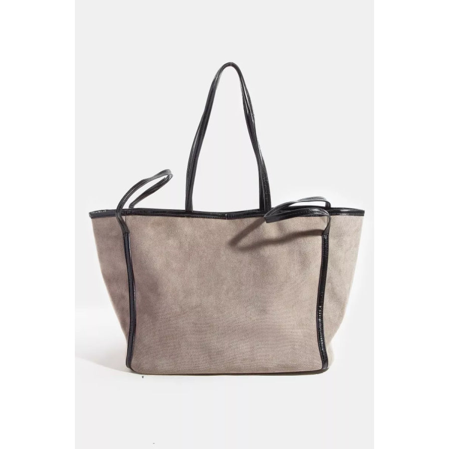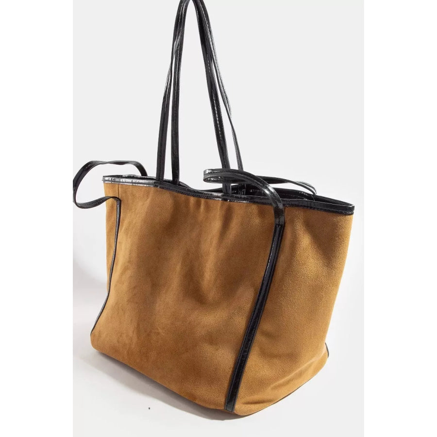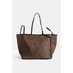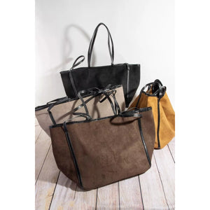 Fame Suede Tote Faux Leather Trim Shoulder Strap