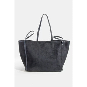 This fashionable suede tote with faux leather trim and shoulder strap is a versatile accessory that combines style and functionality. The luxurious suede material adds a touch of sophistication, while the faux leather trim adds a chic contrast. The shoulder strap offers comfort for carrying your essentials on the go, making it a practical choice. Perfect for everyday use or special occasions, this tote is a stylish and convenient accessory option. Elevate your outfit with this sleek and trendy suede tote that exudes both elegance and practicality.