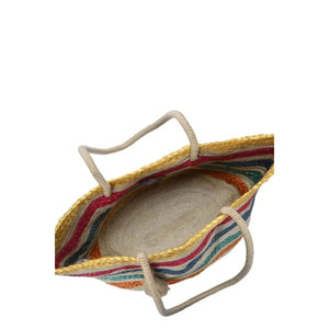 A wavy rainbow straw tote bag is a fun and colorful accessory perfect for summer outings. It adds a cheerful touch to your outfit and is eco-friendly.