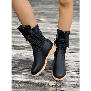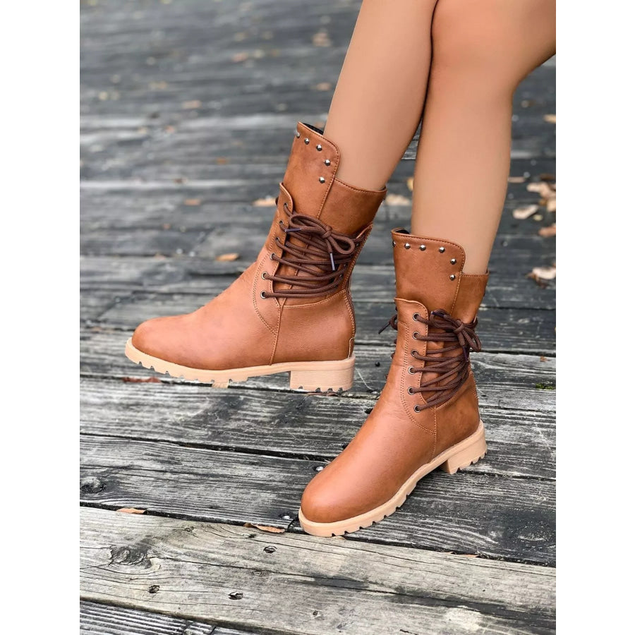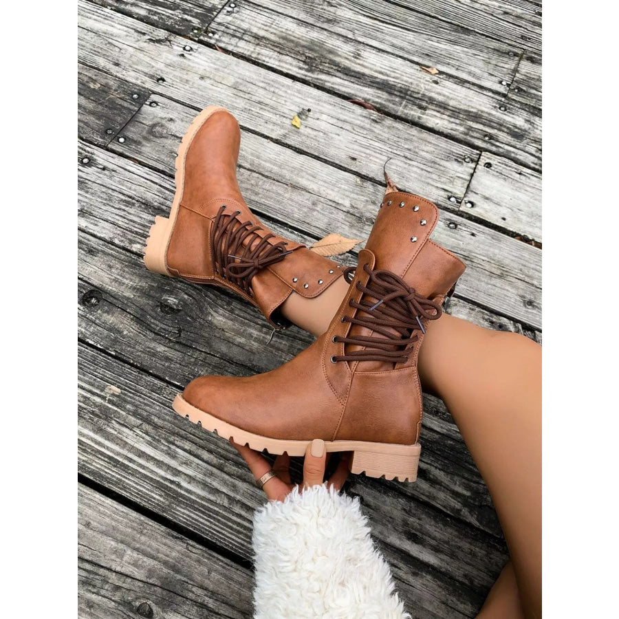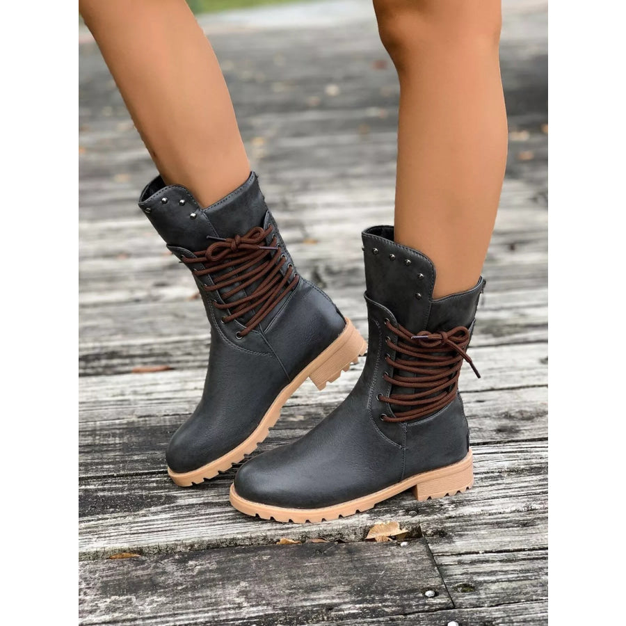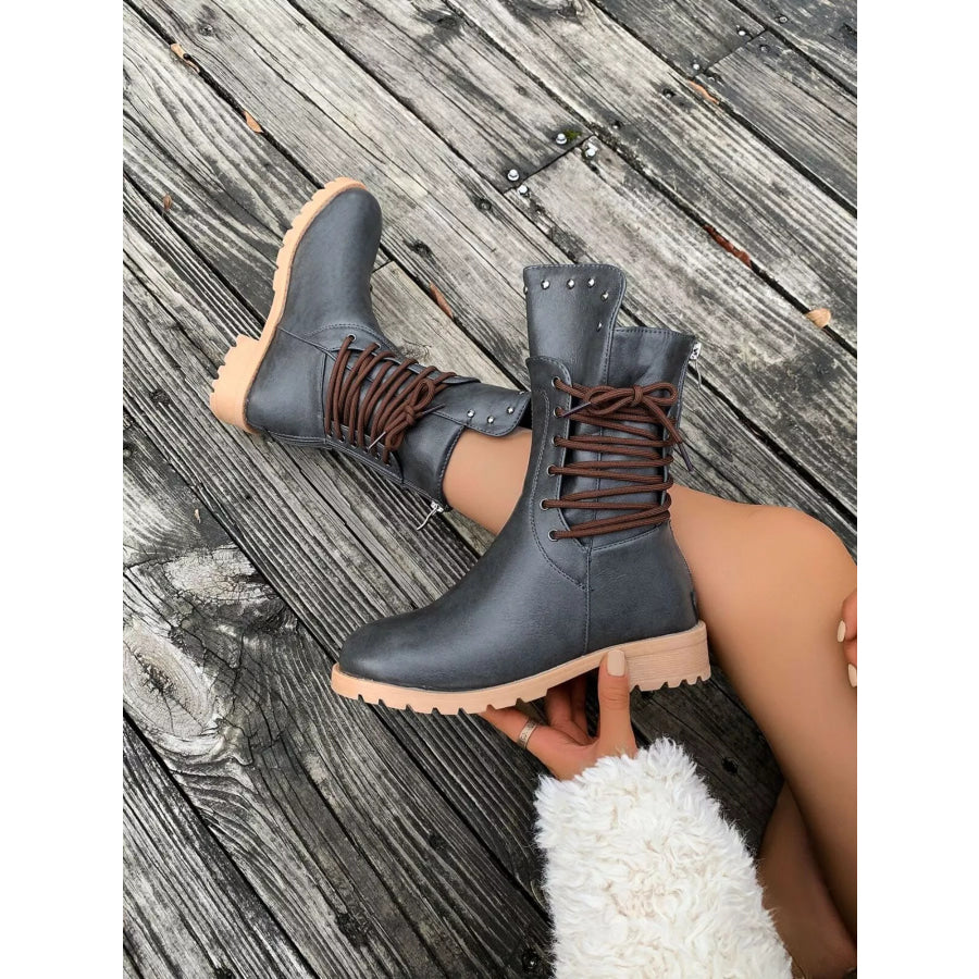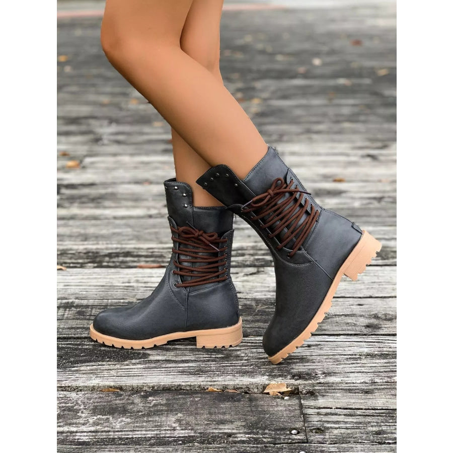 Round Toe Block Heels Boots