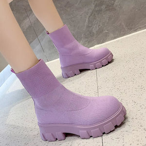 Round Toe Block Heels Boots