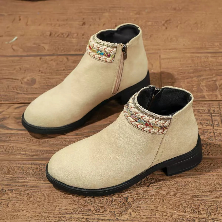 Side Zip Block Heel Boots