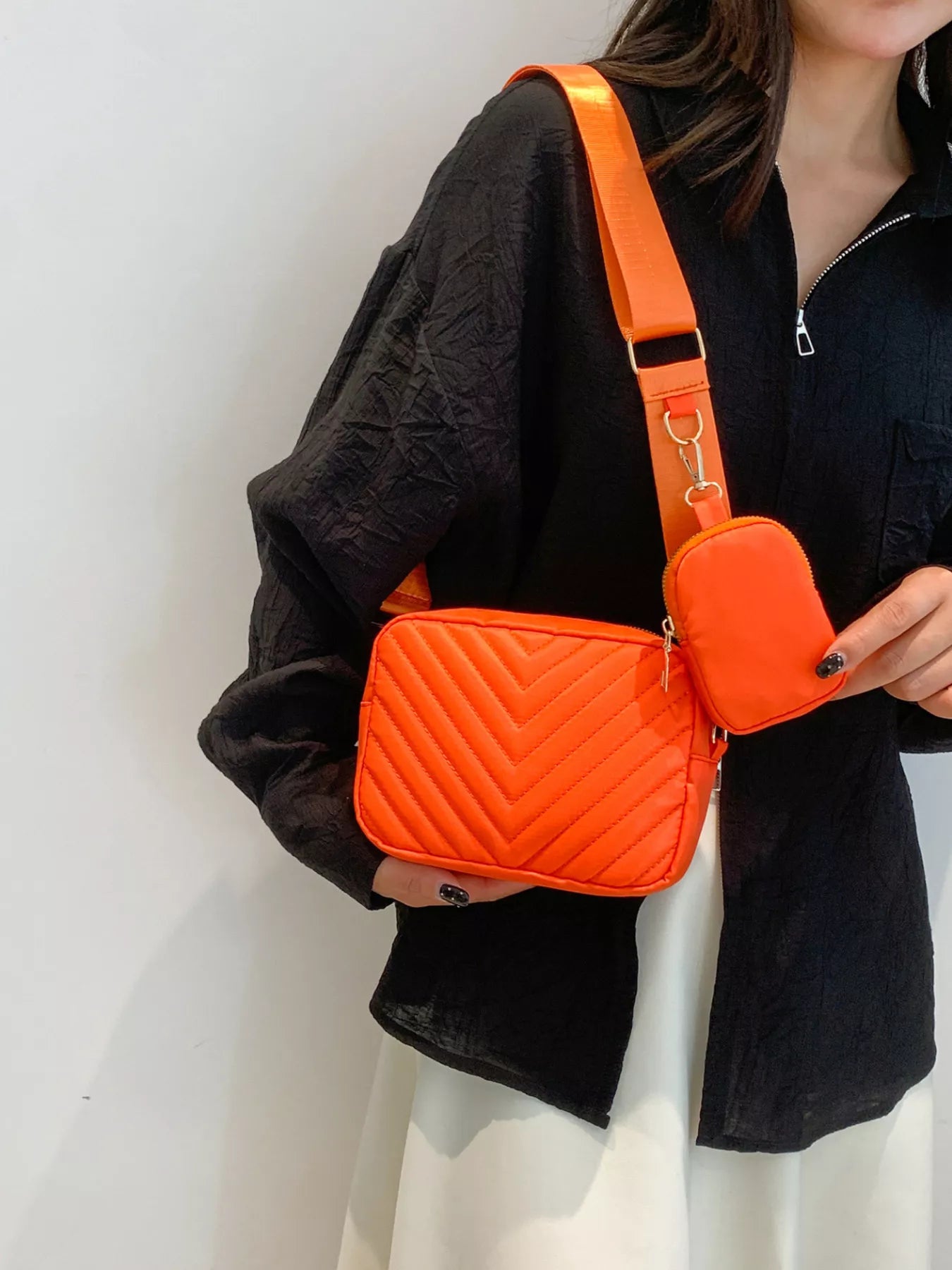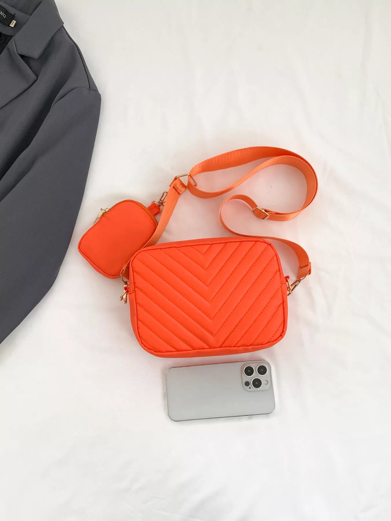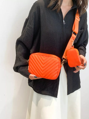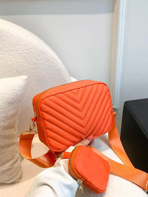 Chevron Quilted Crossbody Bag with Mini Pouch