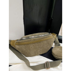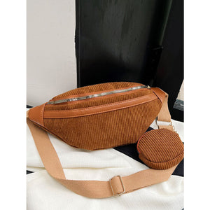 Corduroy Adjustable Strap Crossbody Bag with Pouch