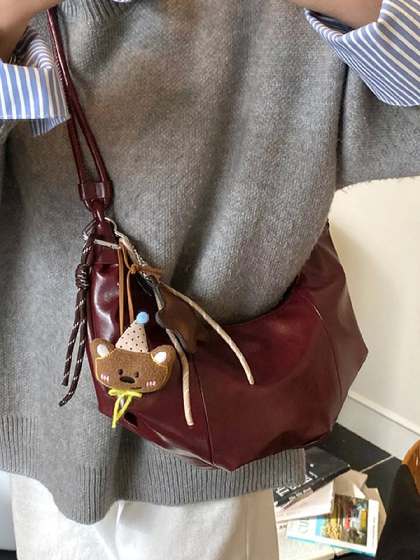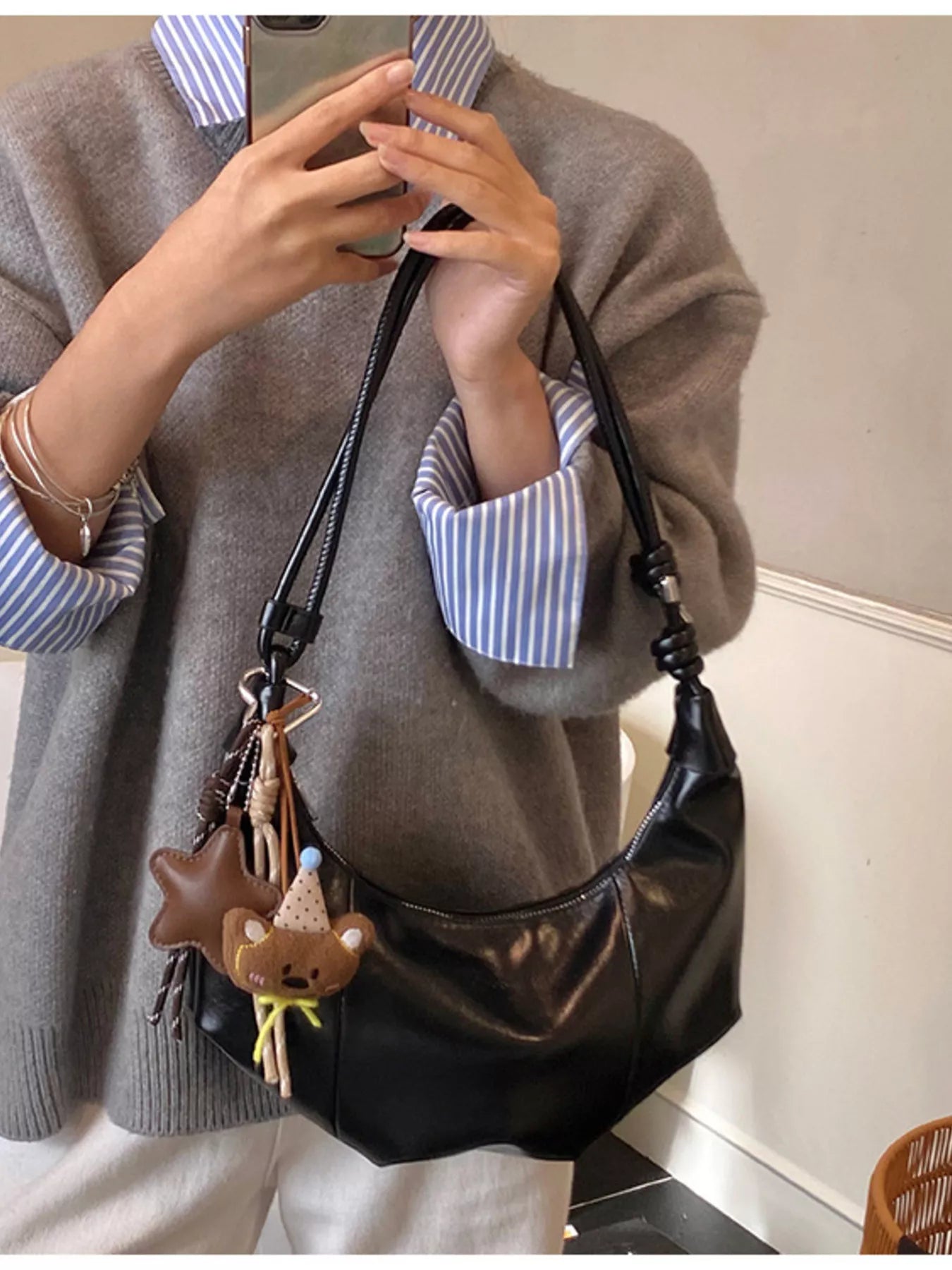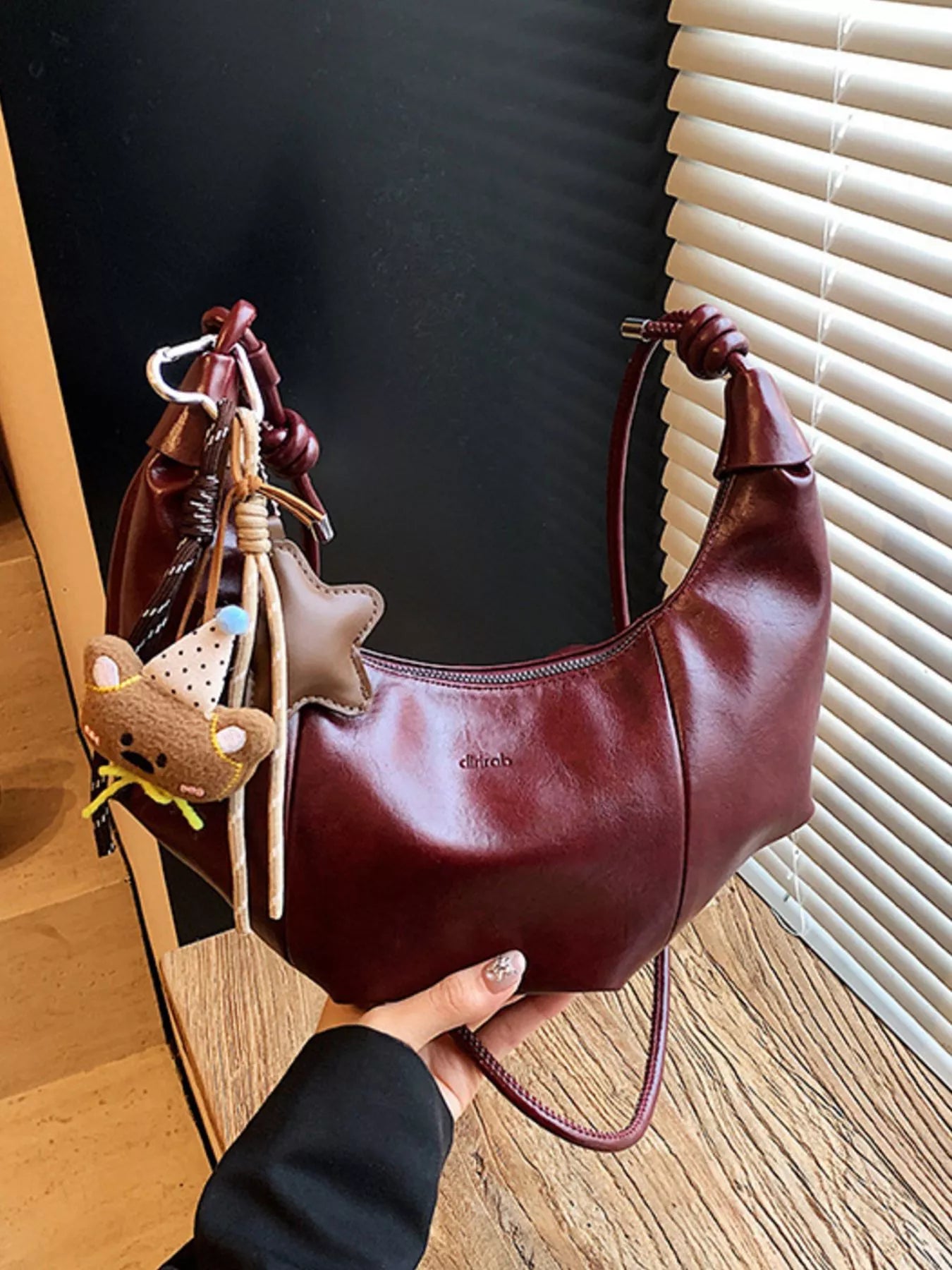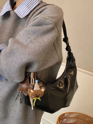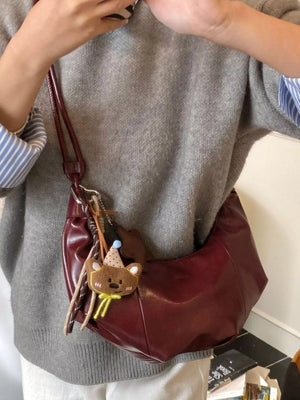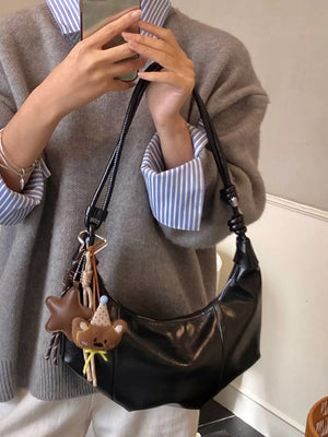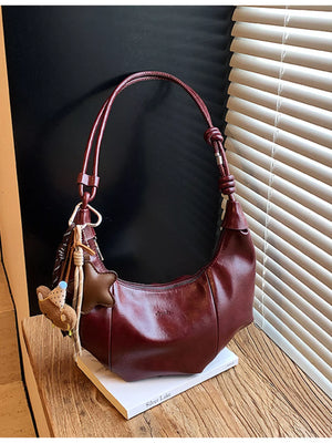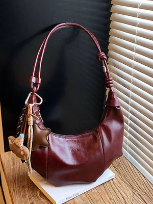 Crescent-Shaped Leather Shoulder Bag
