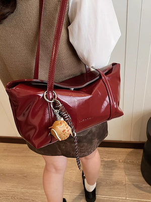 Solid Color Leather Shoulder Bag