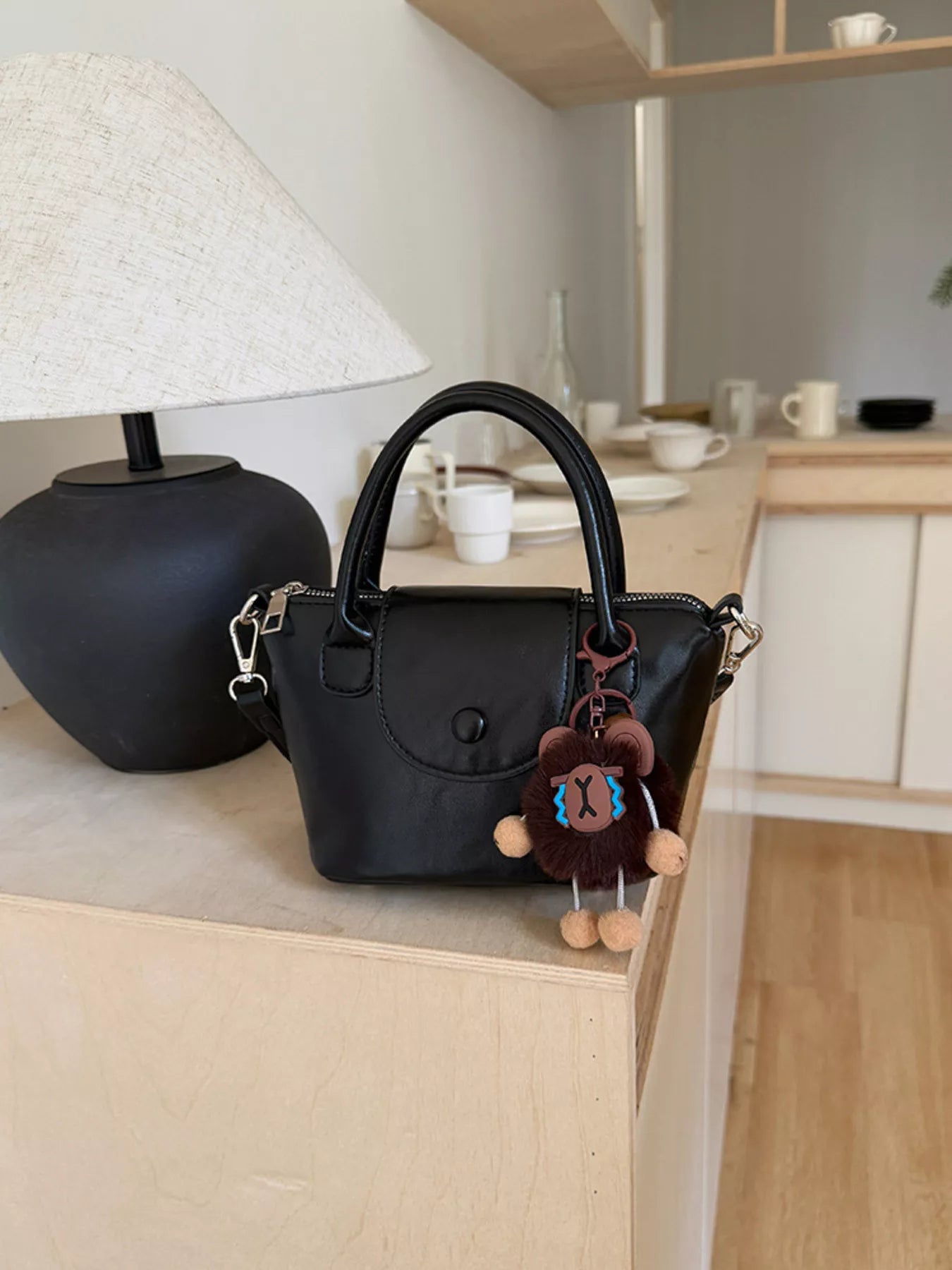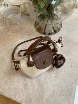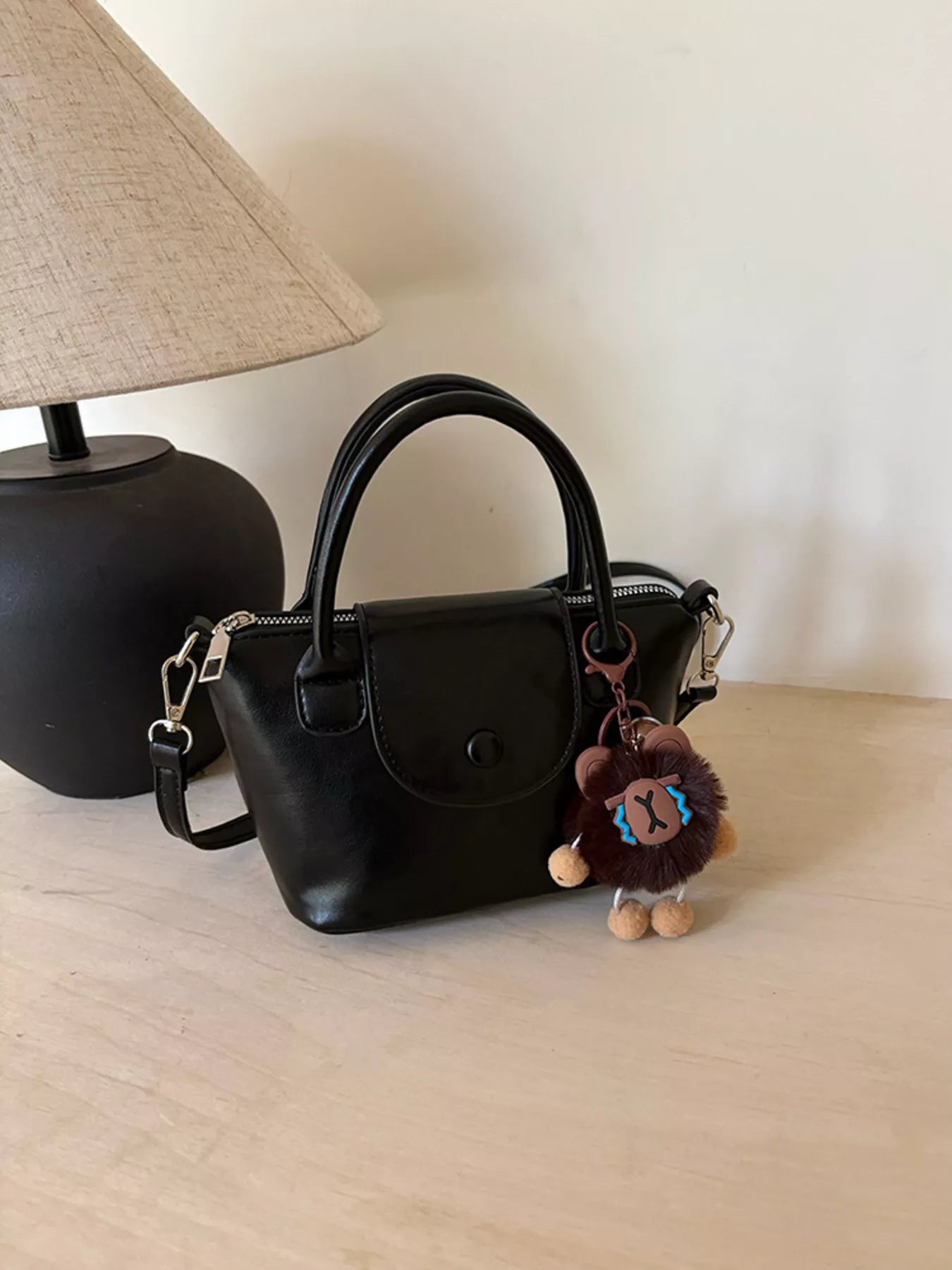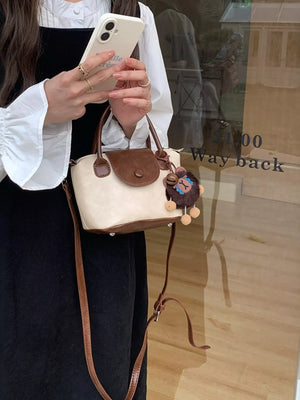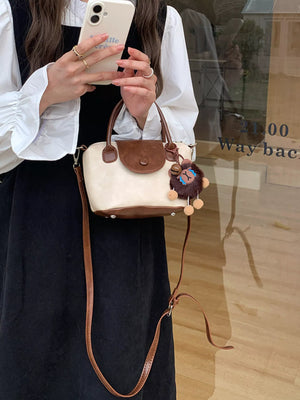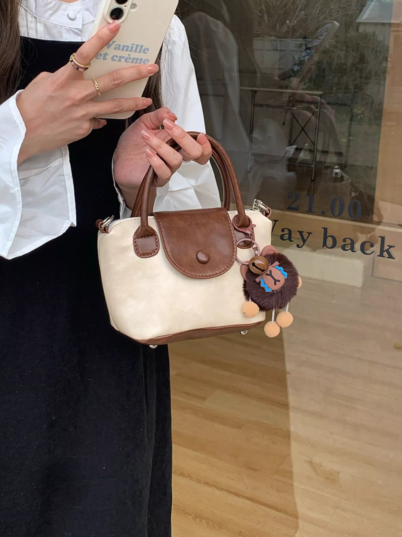 Two-Tone Flap Decor Crossbody Bag with Charm