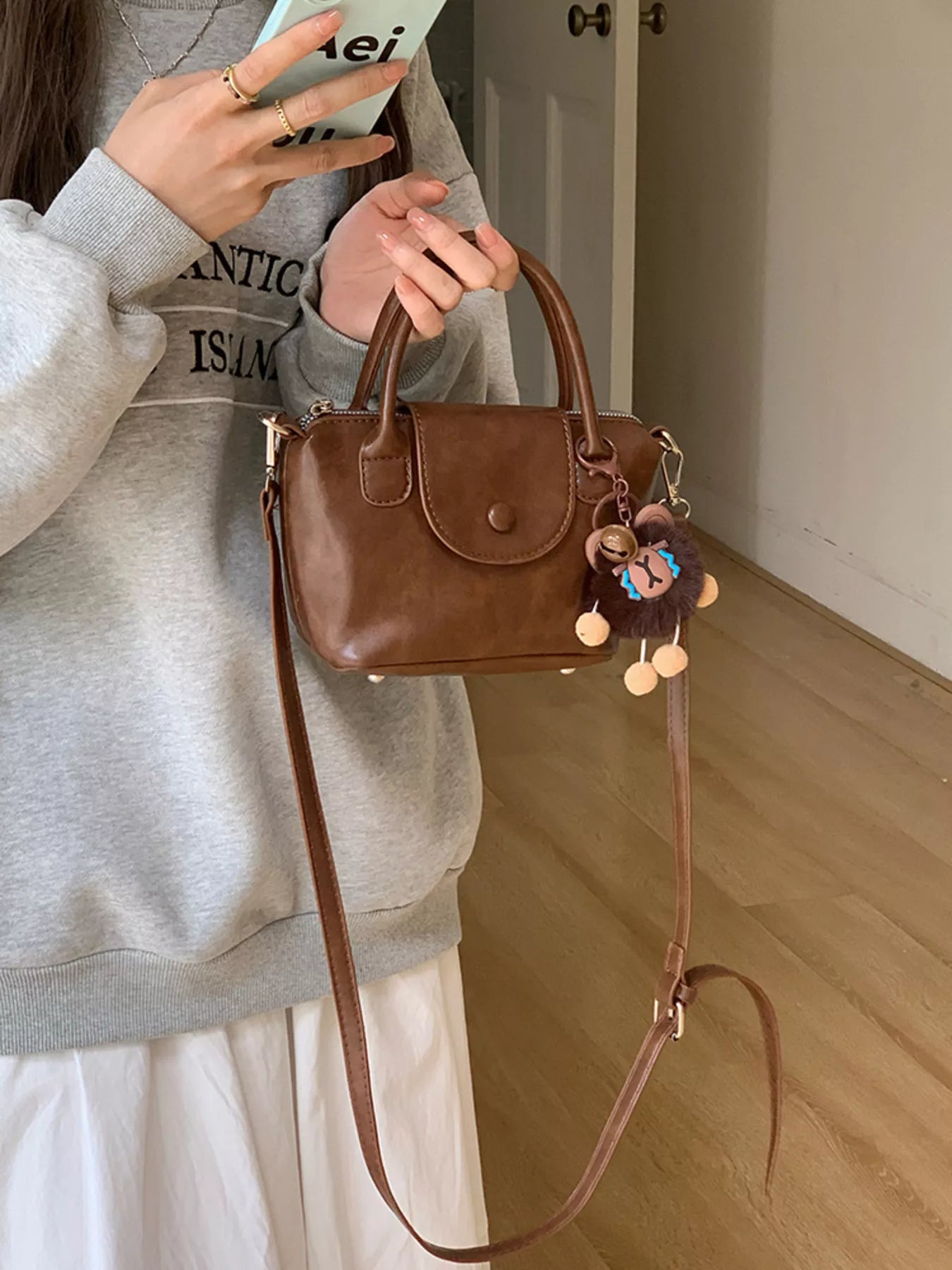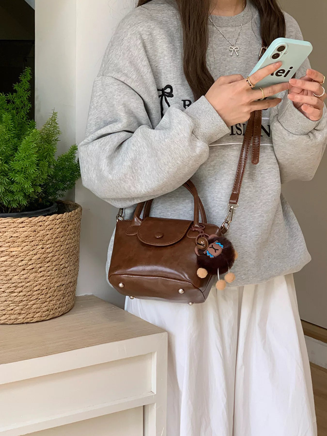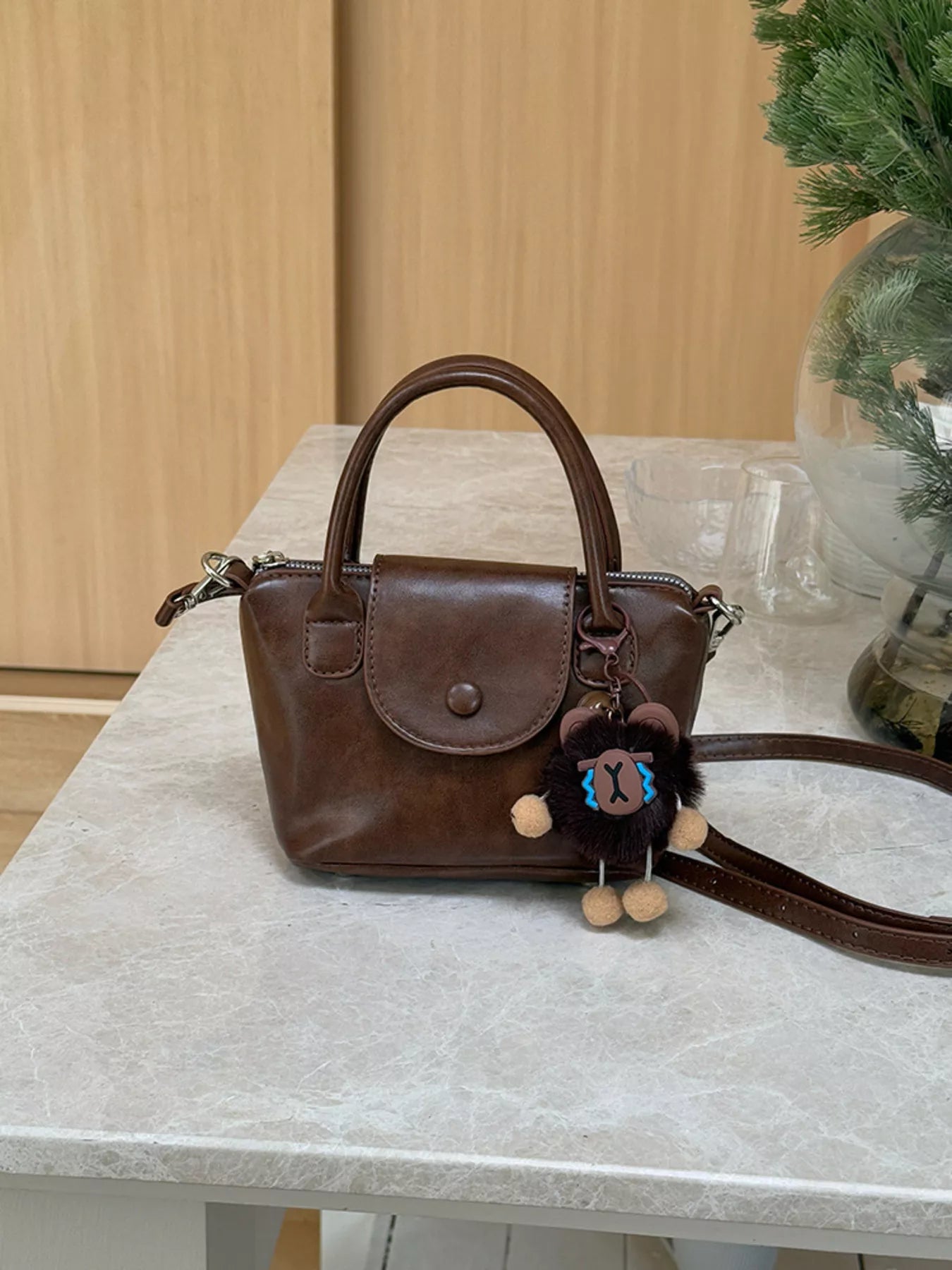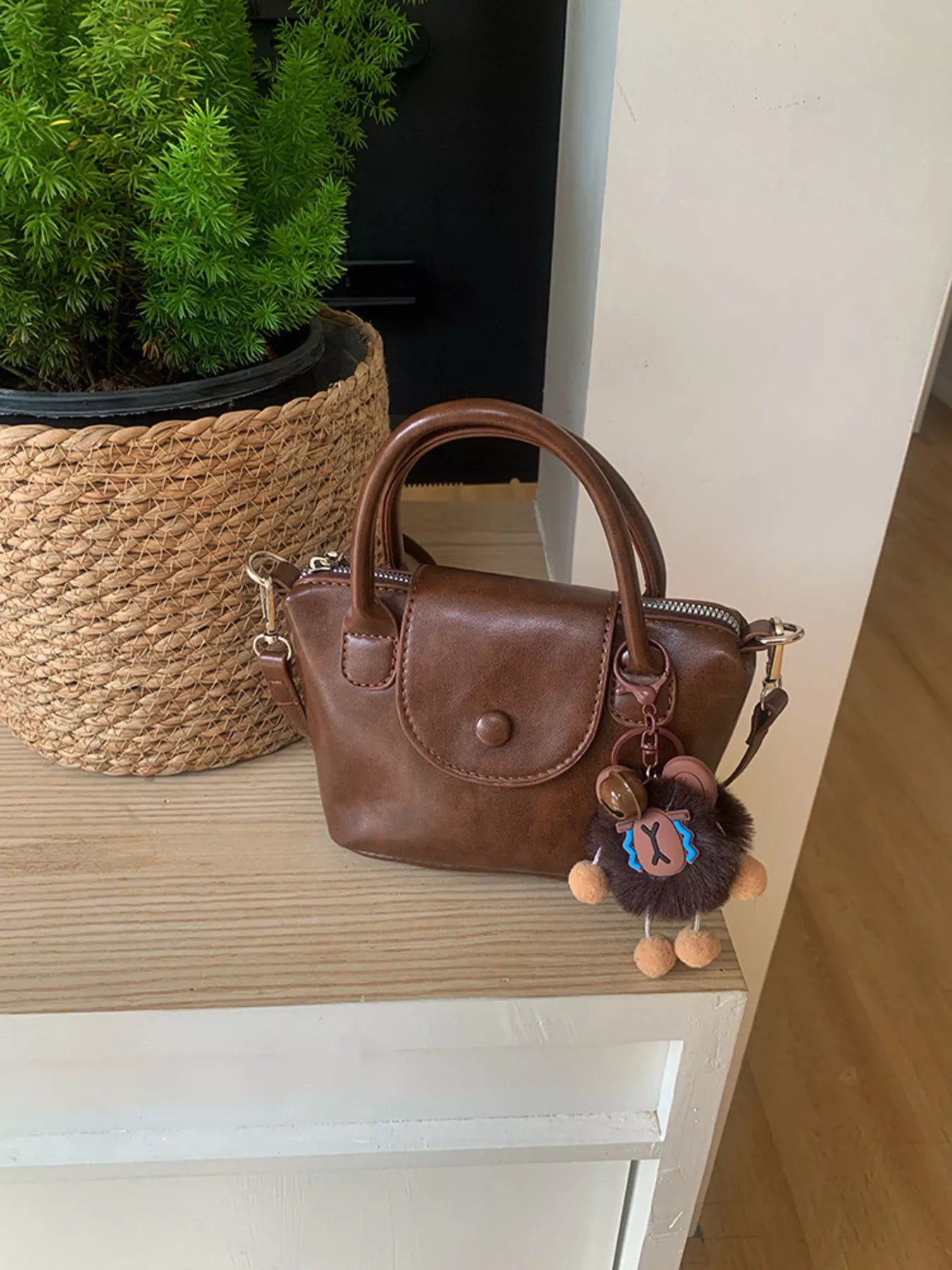 Two-Tone Flap Decor Crossbody Bag with Charm