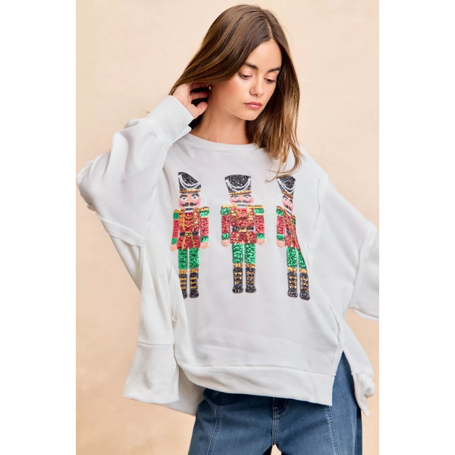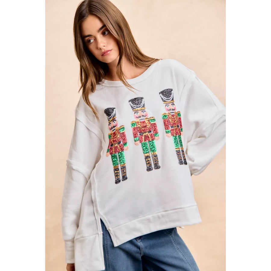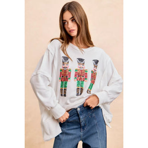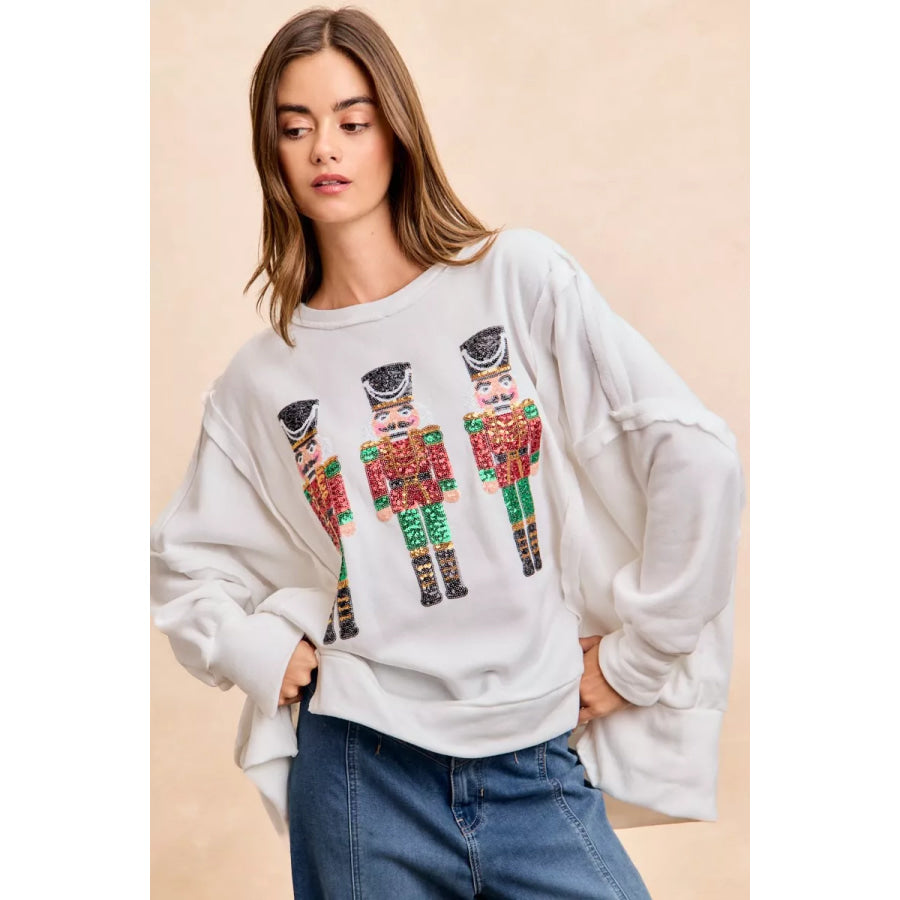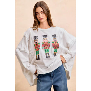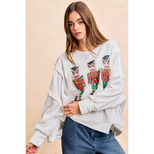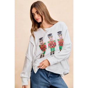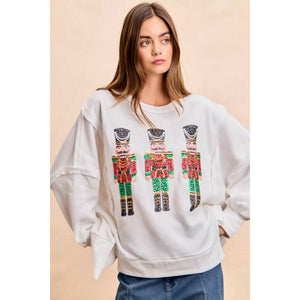 BiBi Christmas Sequin Nutcrackers Embroidery Sweatshirt
