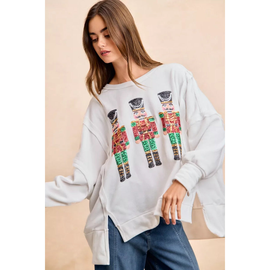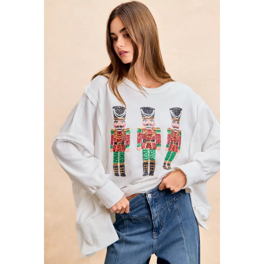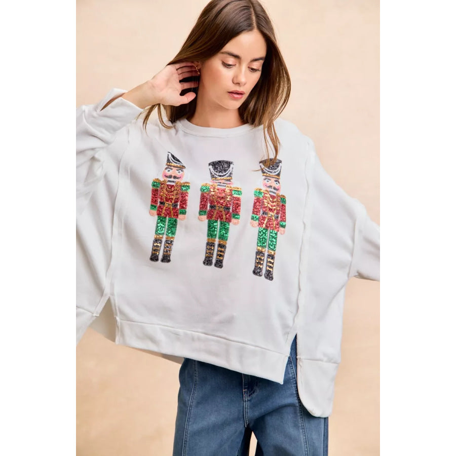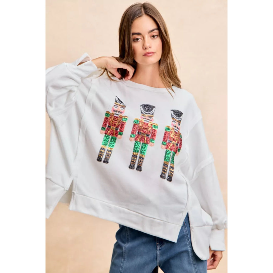 BiBi Christmas Sequin Nutcrackers Embroidery Sweatshirt