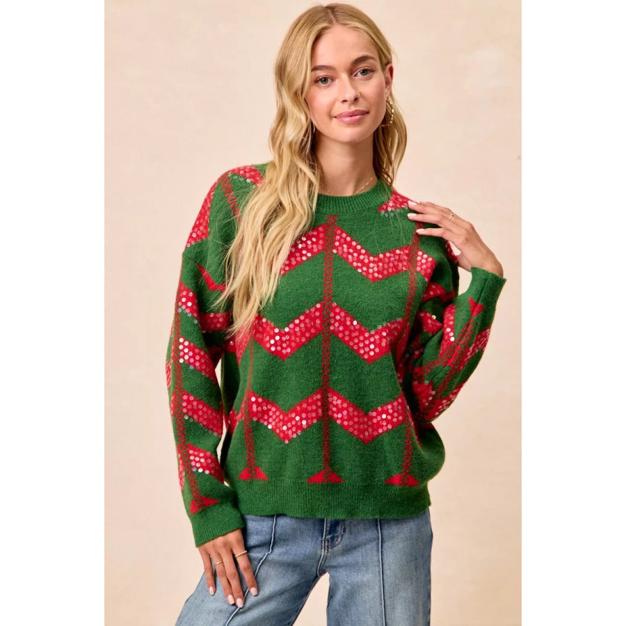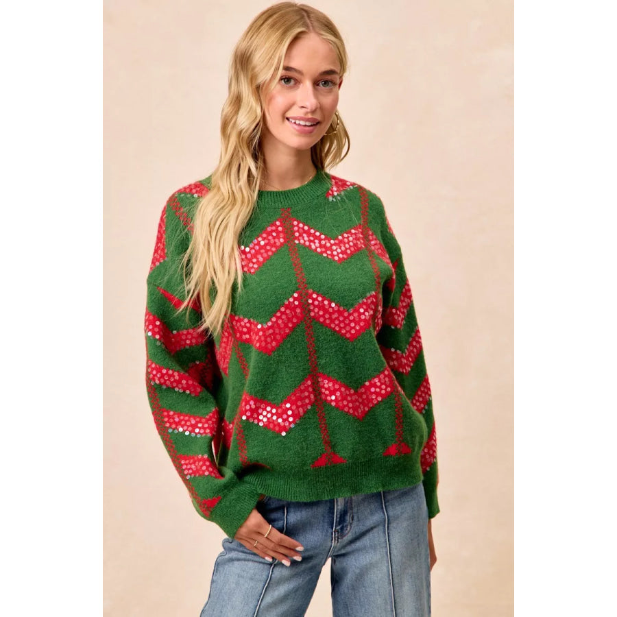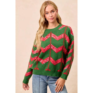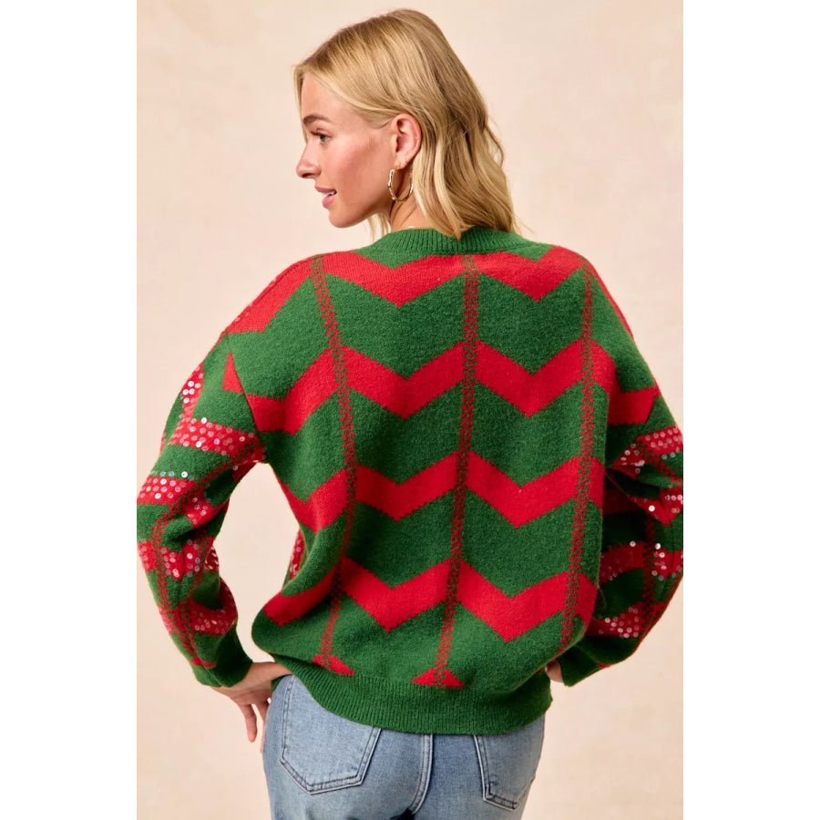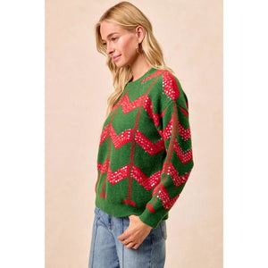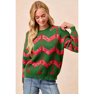 BiBi Christmas Theme Chevron Sequins Detail Sweater
