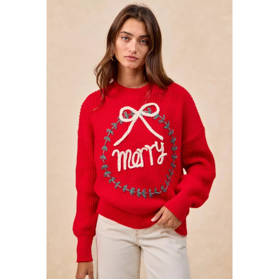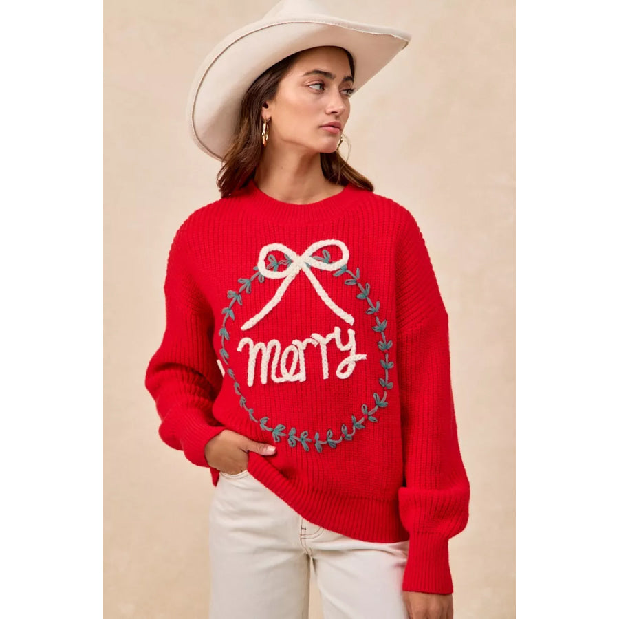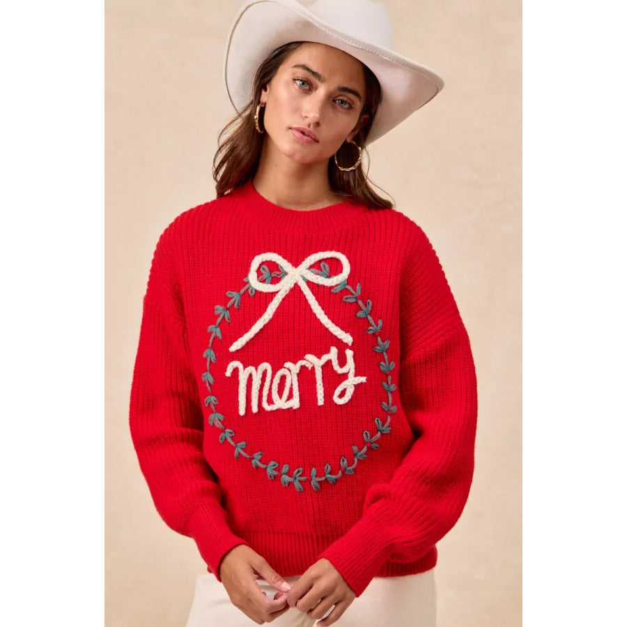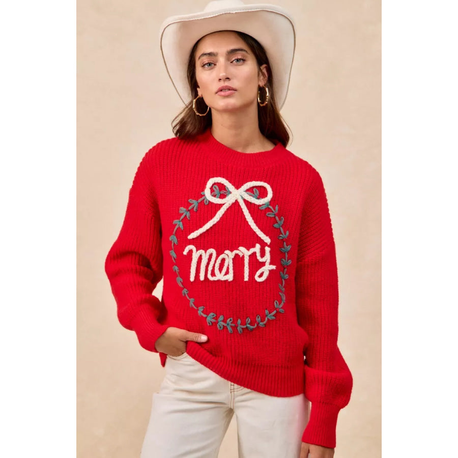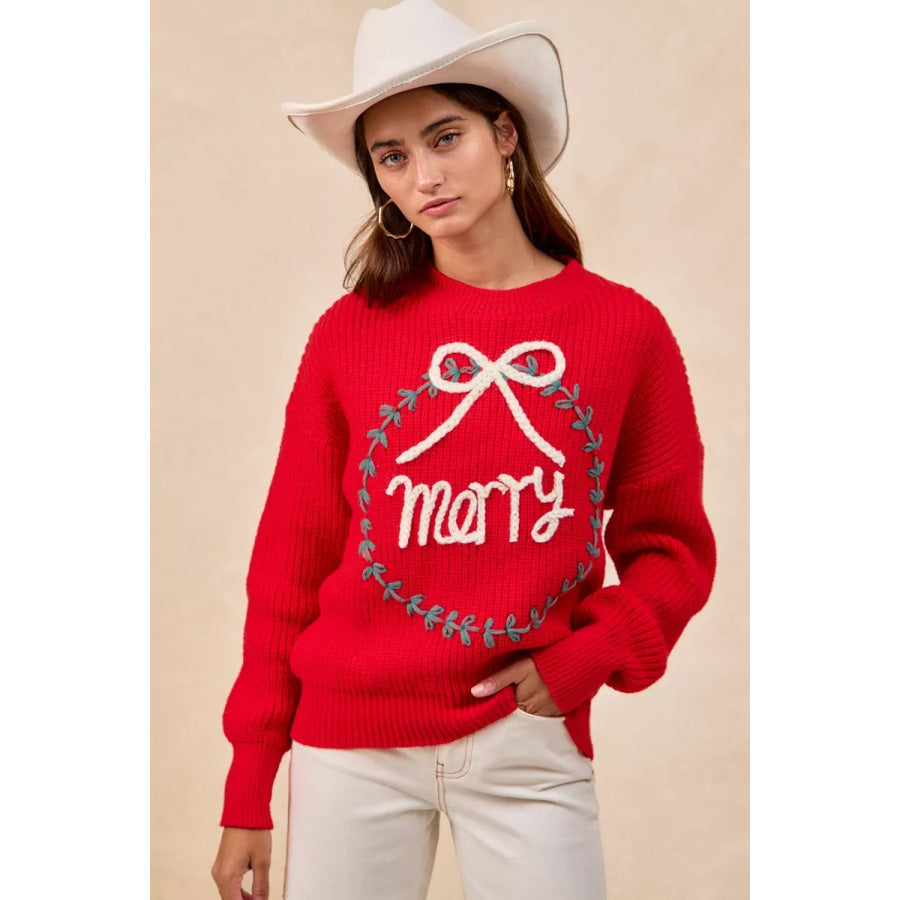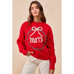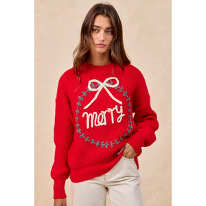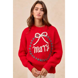 The Christmas Wreath Merry Letter Knit Top is a festive and joyful addition to your holiday wardrobe. Featuring a charming Christmas wreath design and cheerful "Merry" lettering, this knit top captures the spirit of the season. Made from cozy and comfortable knit fabric, it is perfect for staying warm during winter festivities. Whether you're celebrating with loved ones or spreading holiday cheer, this top is a merry and stylish choice. Embrace the magic of Christmas with this delightful knit top that will keep you feeling festive all season long.