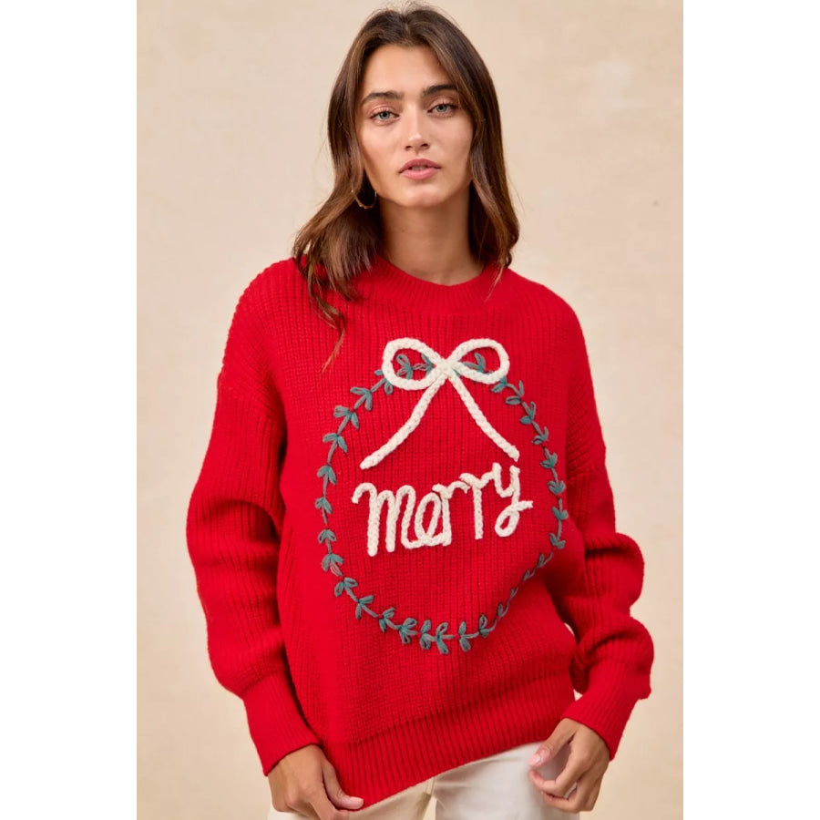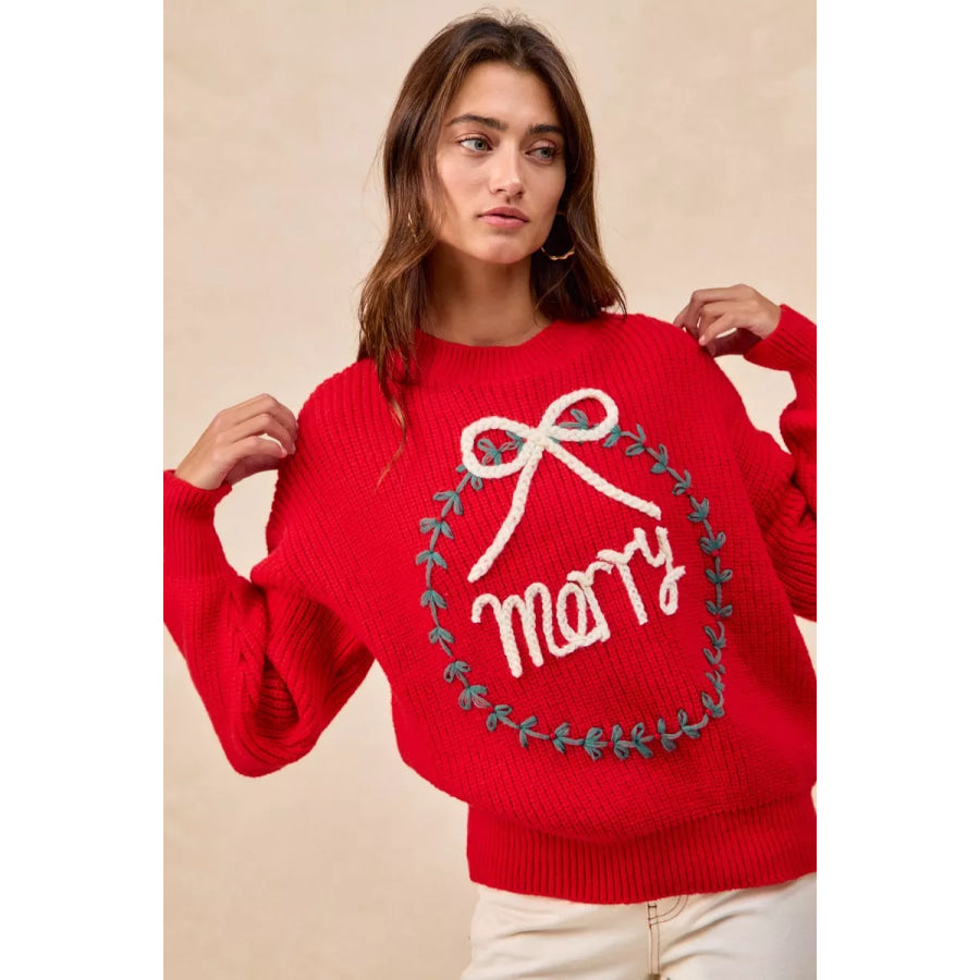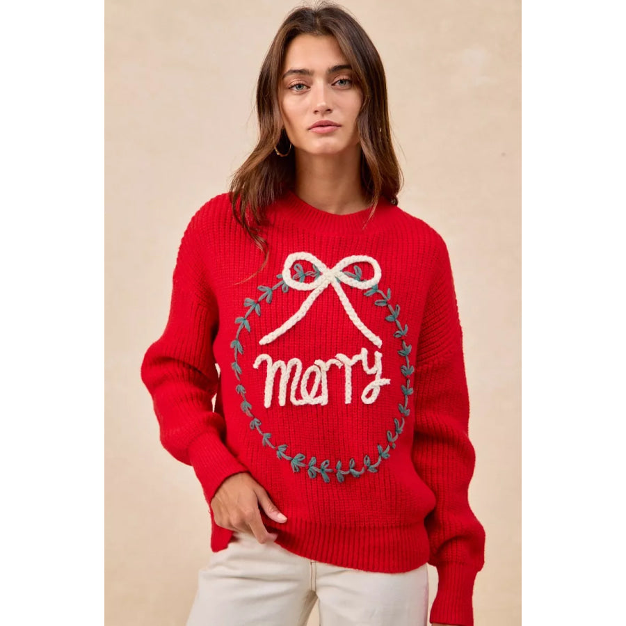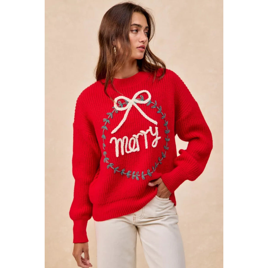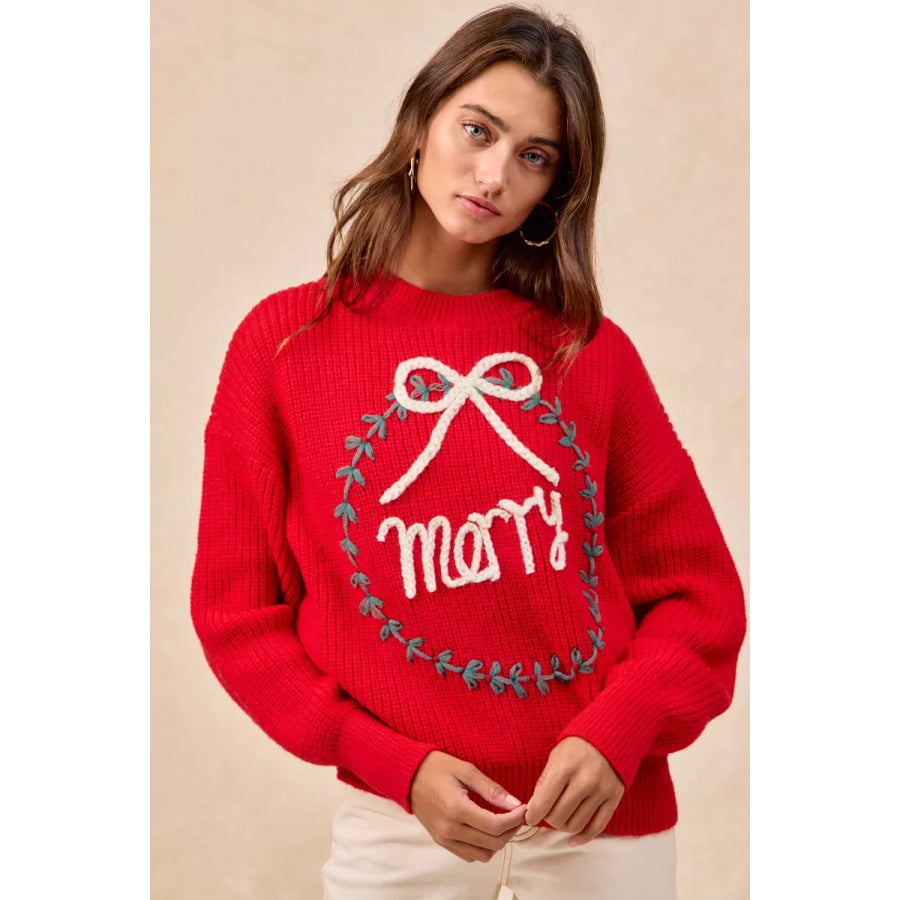 The Christmas Wreath Merry Letter Knit Top is a festive and joyful addition to your holiday wardrobe. Featuring a charming Christmas wreath design and cheerful "Merry" lettering, this knit top captures the spirit of the season. Made from cozy and comfortable knit fabric, it is perfect for staying warm during winter festivities. Whether you're celebrating with loved ones or spreading holiday cheer, this top is a merry and stylish choice. Embrace the magic of Christmas with this delightful knit top that will keep you feeling festive all season long.