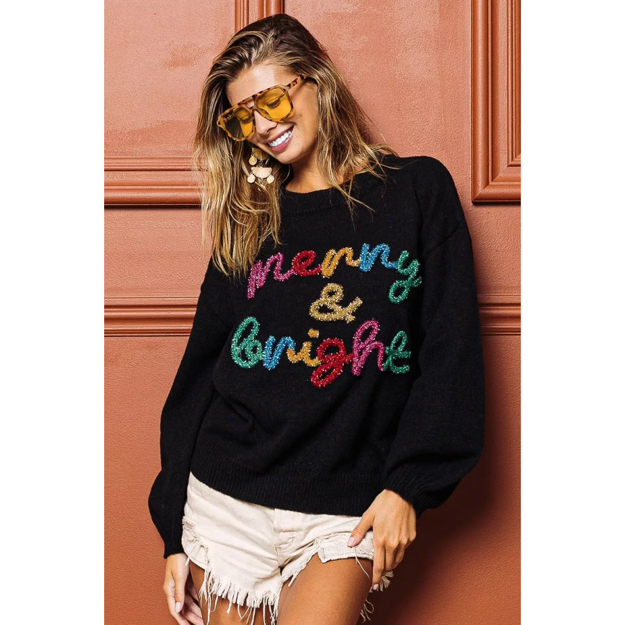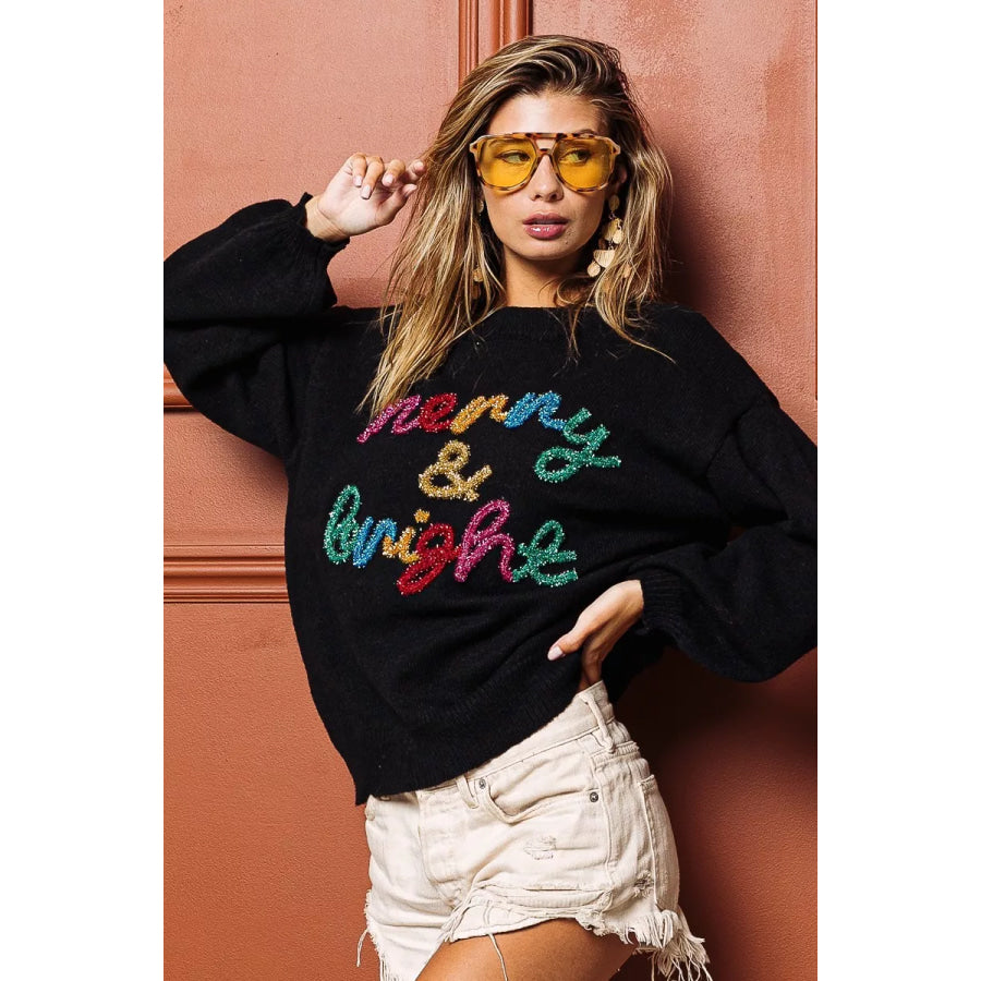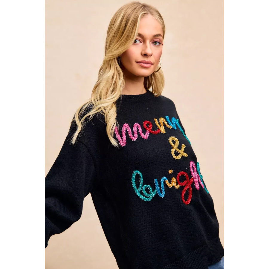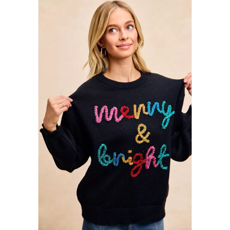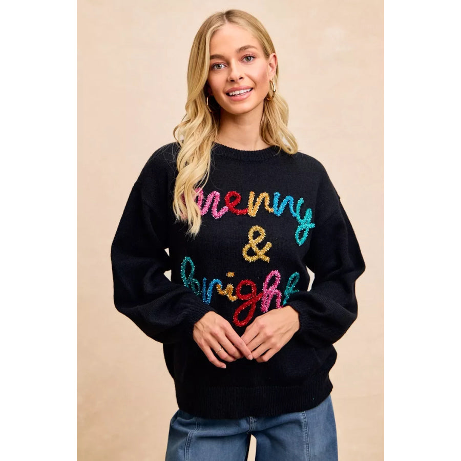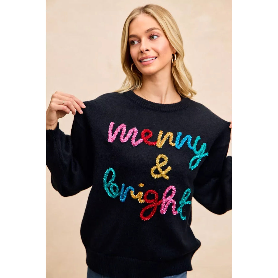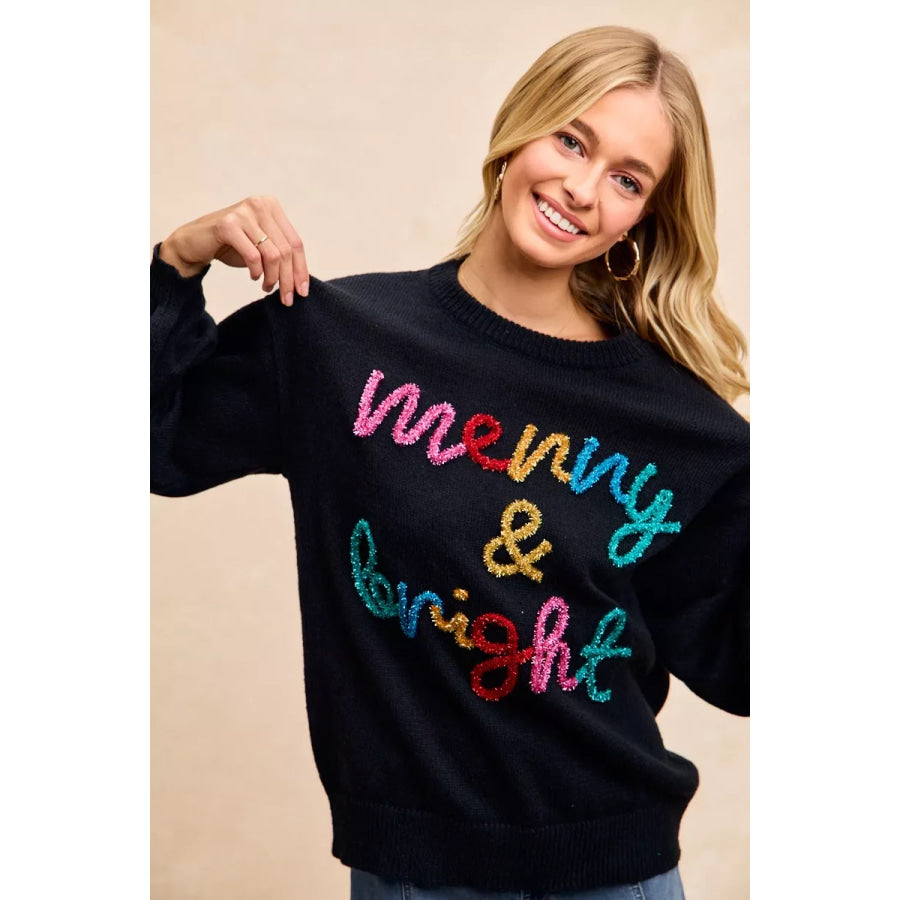 This tinsel lettering Christmas sweater is a fun and festive way to celebrate the holiday season. The shimmering tinsel lettering adds a playful and eye-catching element to the sweater. Made from cozy knit fabric, this sweater is perfect for staying warm and stylish during holiday gatherings. Embrace the Christmas spirit with this unique and whimsical sweater that is sure to stand out. Spread joy and cheer with this tinsel lettering Christmas sweater as part of your festive wardrobe.