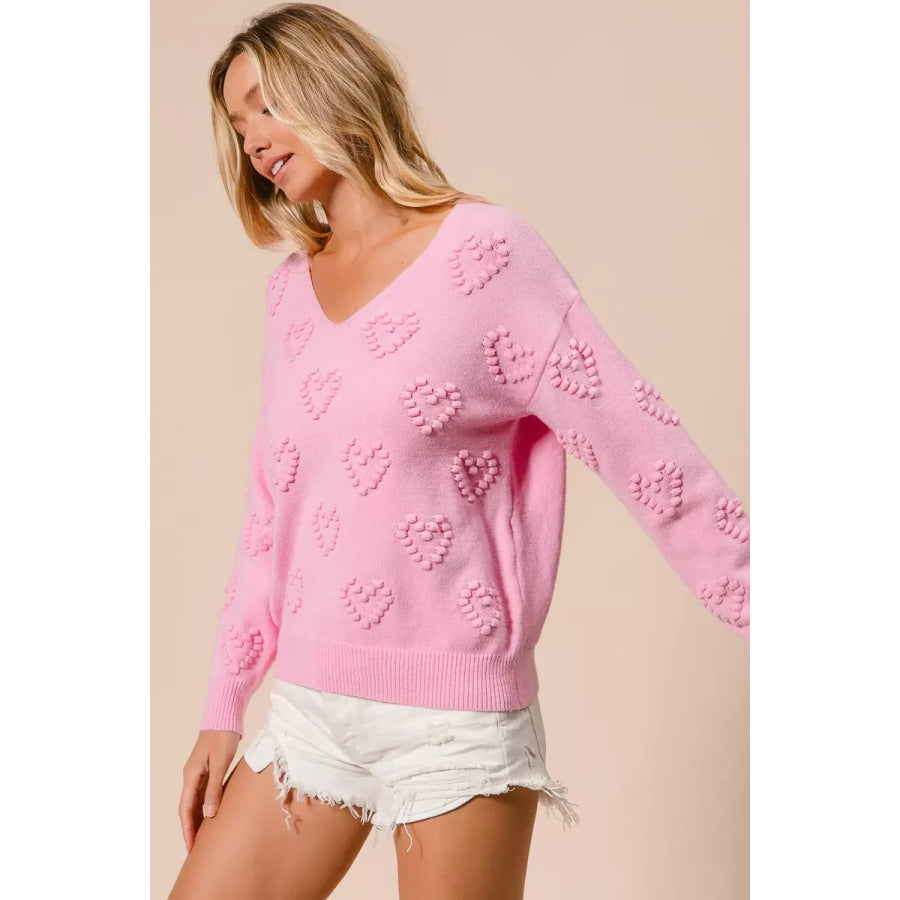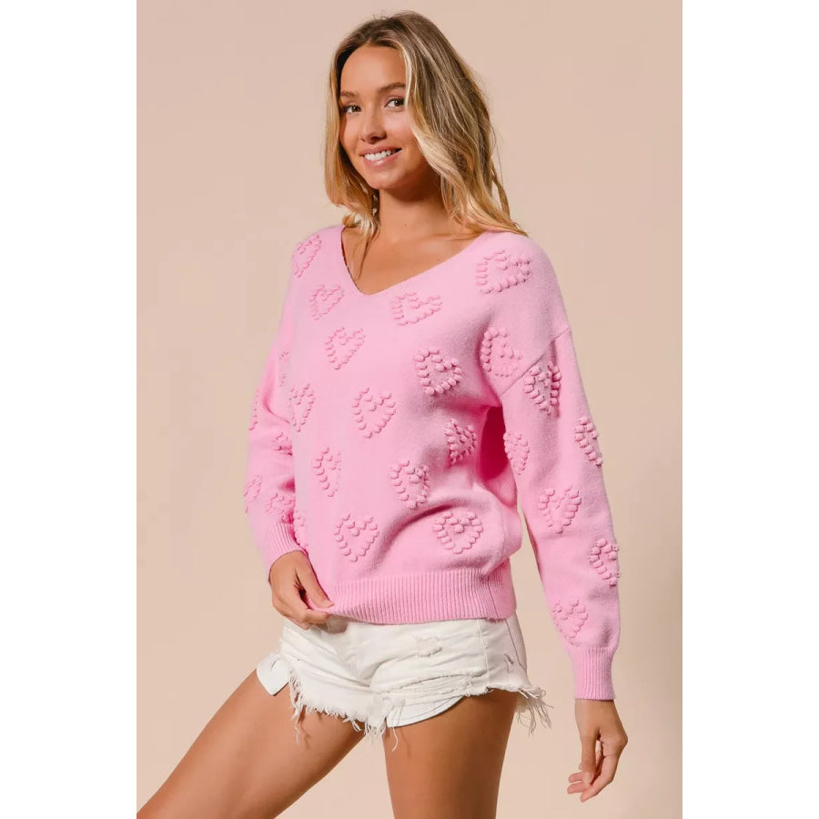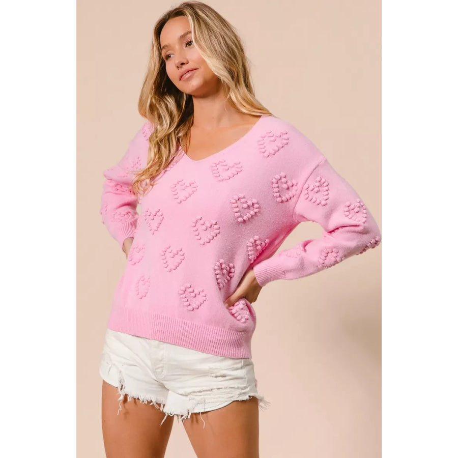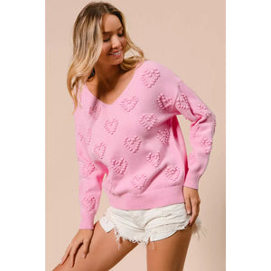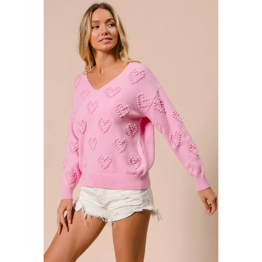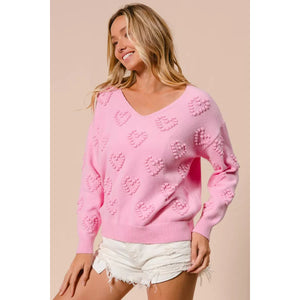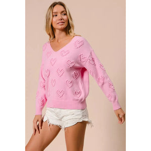 BiBi Valentines Heart Pompom V Neck Knit Top