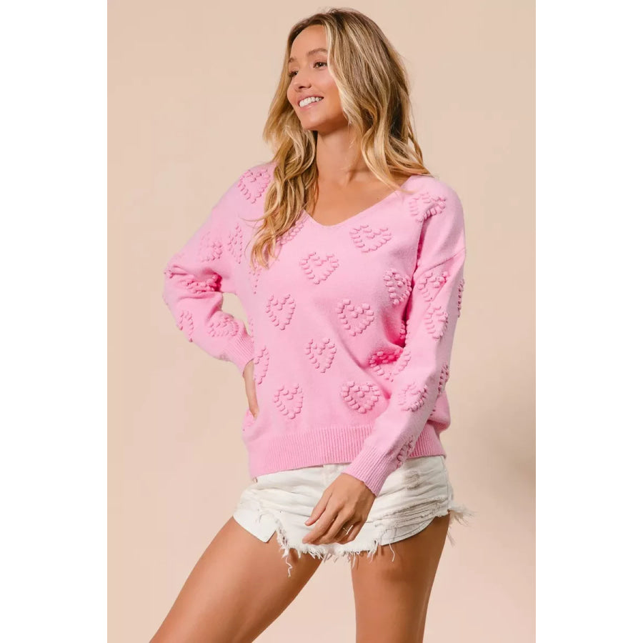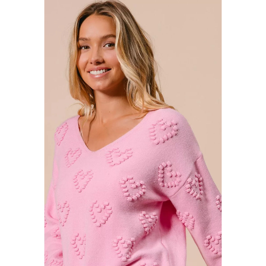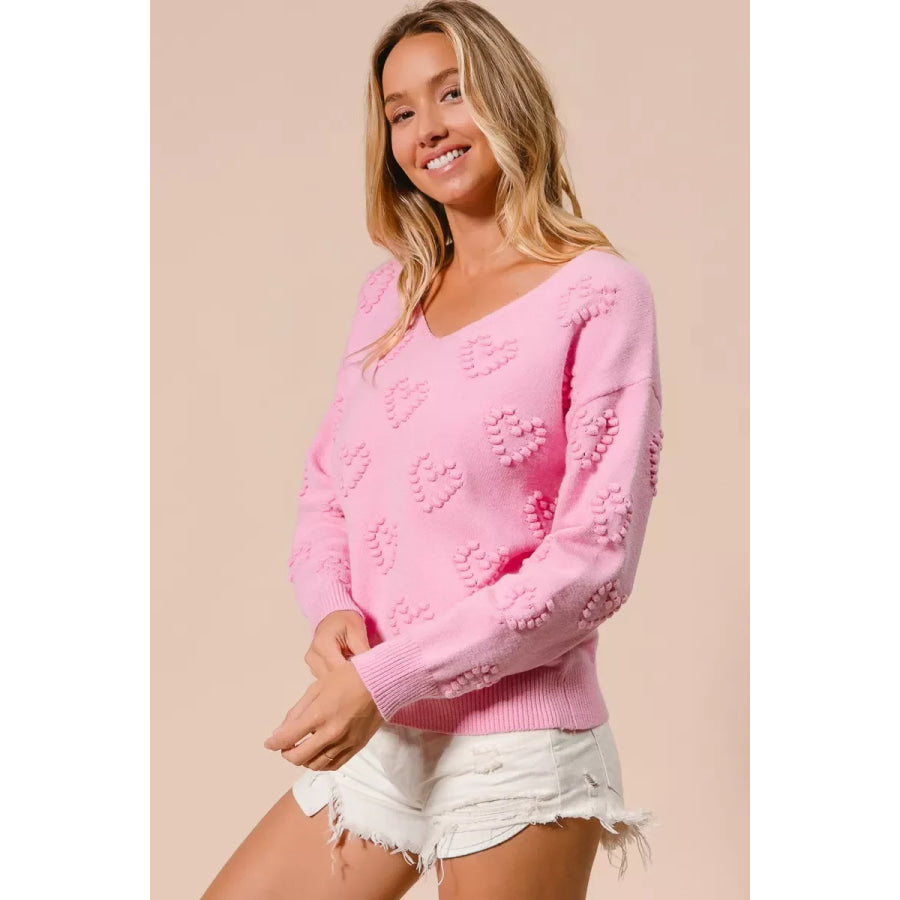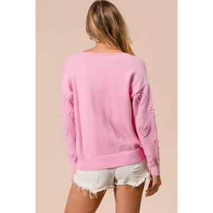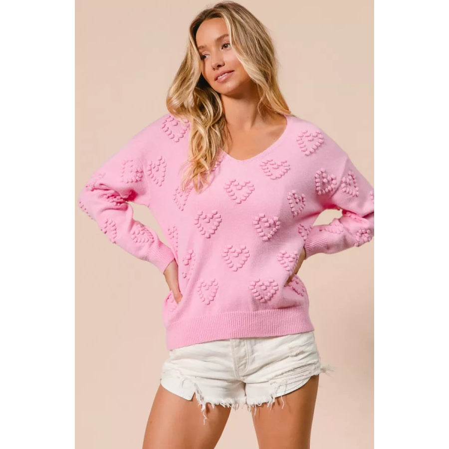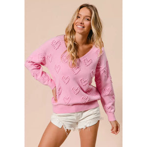 BiBi Valentines Heart Pompom V Neck Knit Top