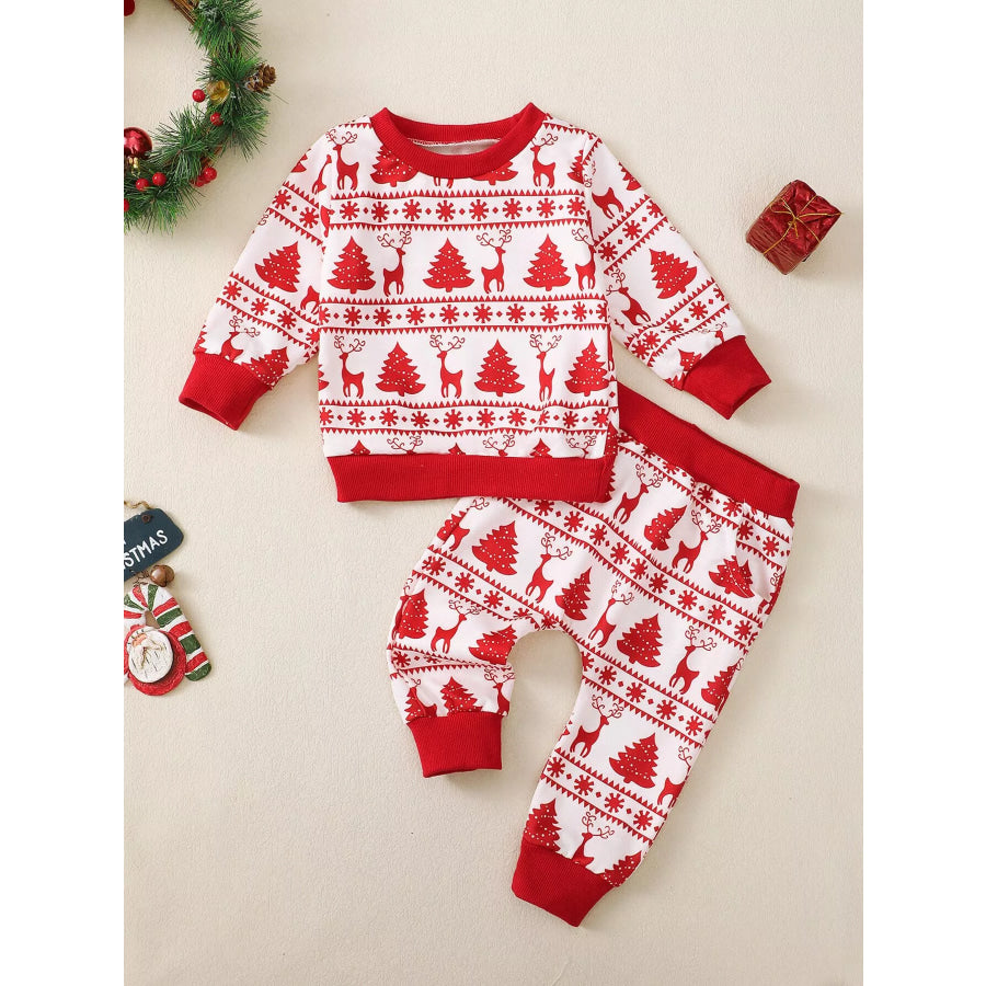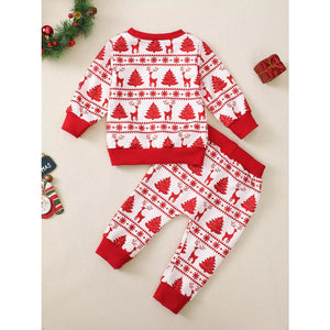 Children's Christmas Reindeer & Tree Print Top and Pants Set