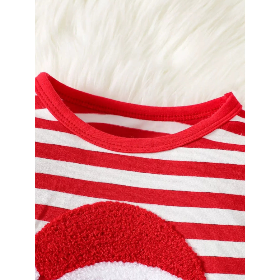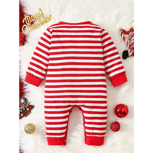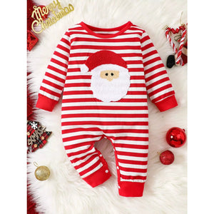 Children's Christmas Santa Striped Snapped Legs Jumpsuit
