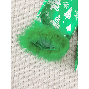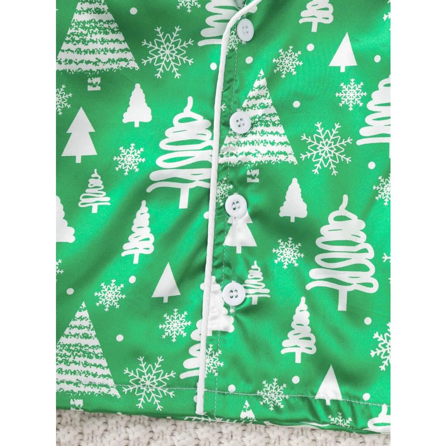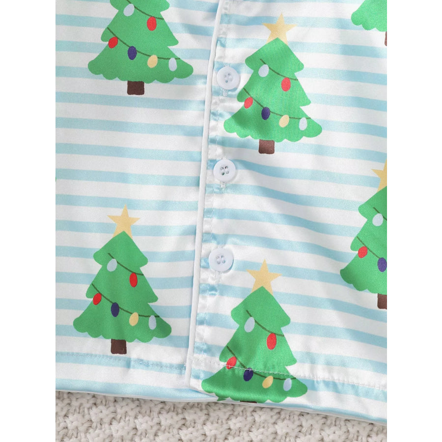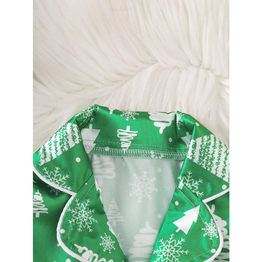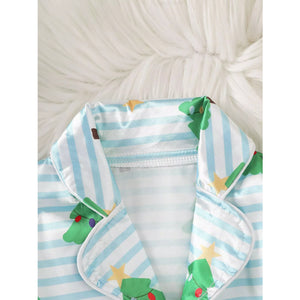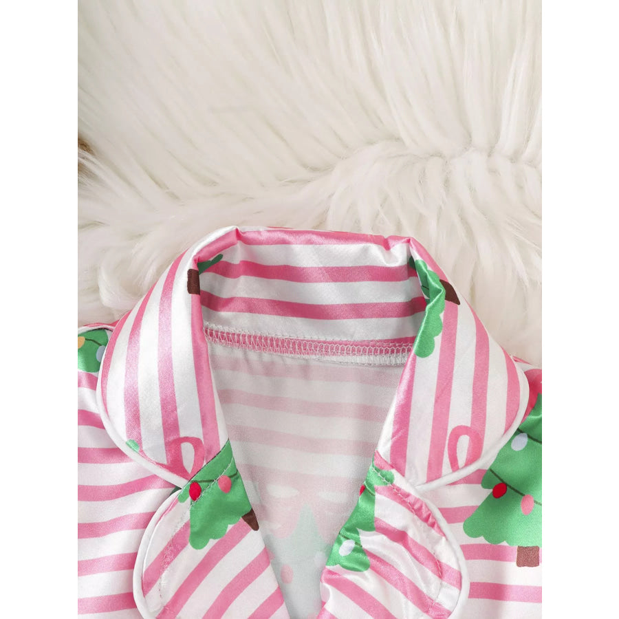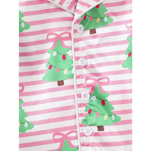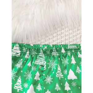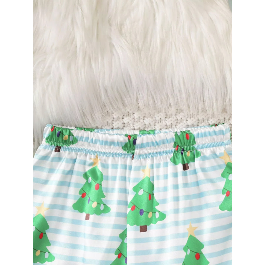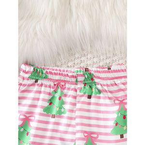 Children's Christmas Tree Print Fluffy Cuff Pajama Set