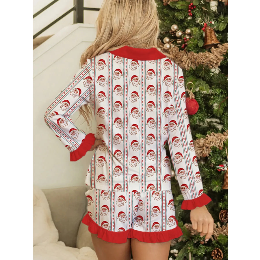 Christmas Santa & Stripes Ruffle Top and Shorts Set