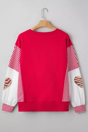 Color Block Striped Patchwork Valentines Day Sequin Heart Graphic Sweatshirt