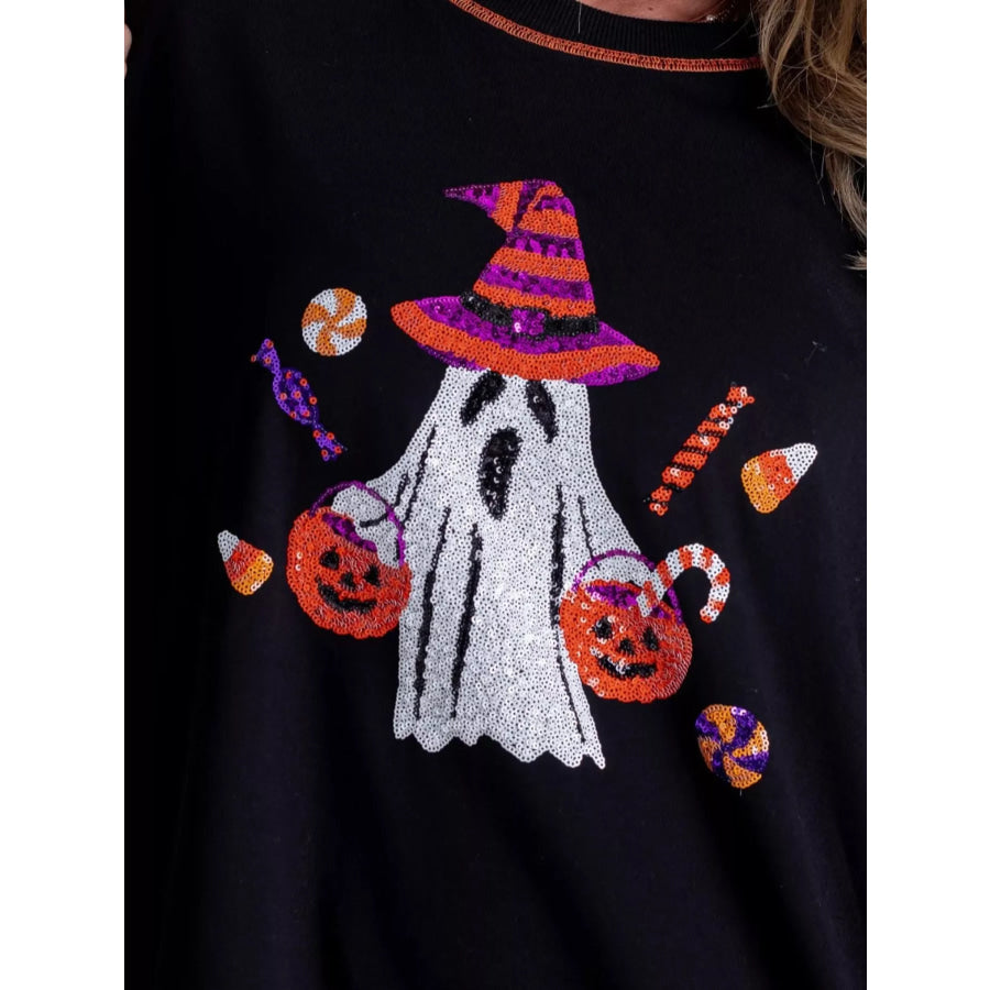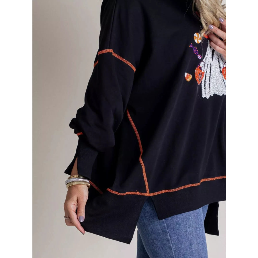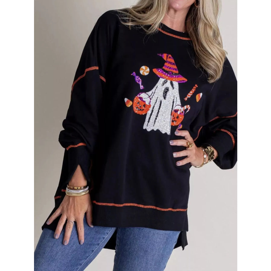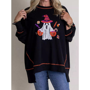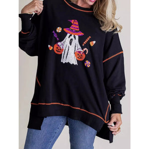 Halloween Ghost Sequin Exposed Seam Sweatshirt