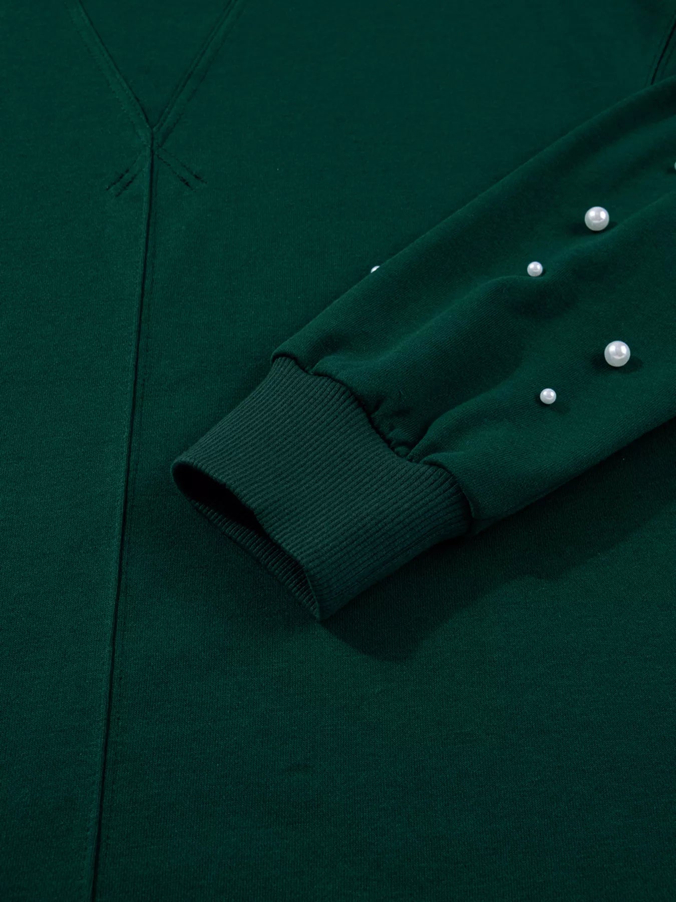 Pearl Embellished Drop Shoulder Pullover Elastic Waist Mini Skirt Set