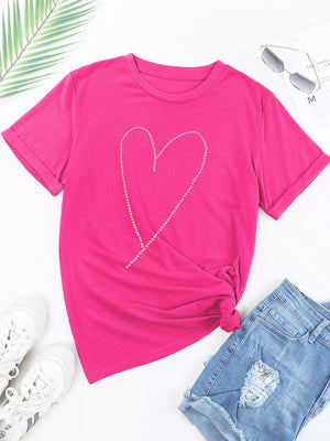 Rhinestone Heart Graphic Crew Neck Valentines Tee