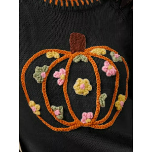 The pumpkin floral embroidered Thanksgiving sweater is a festive and charming choice for the holiday season. The pumpkin and floral embroidery adds a whimsical and seasonal touch to the sweater. Perfect for celebrating Thanksgiving in style, this sweater is cozy and comfortable with a cheerful design. Pair it with jeans or leggings for a cozy and festive look that captures the spirit of the fall season.