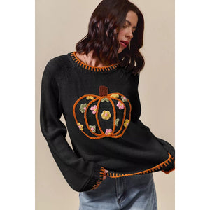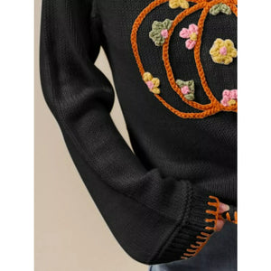 SO ME Pumpkin Floral Embroidered Thanksgiving Sweater