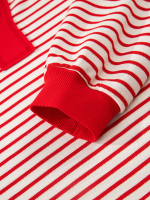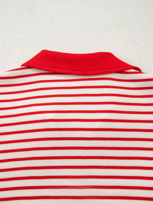 Stripe Collared V Neck Drop Shoulder Pullover and Skort 2pcs Outfit