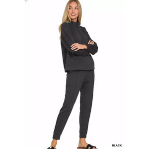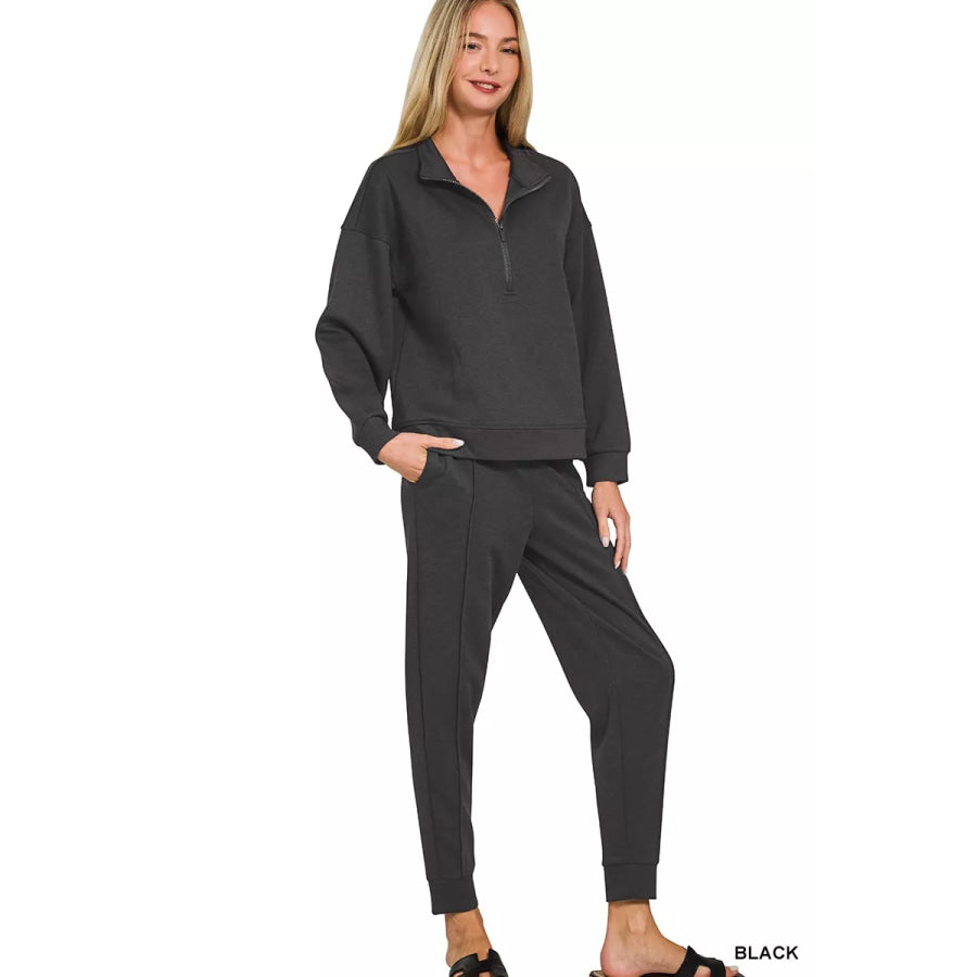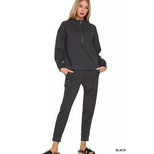 Zenana Scuba Half Zip Pullover and Jogger Set
