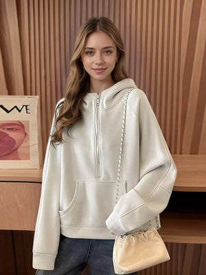 Casual Half-Zip Long Sleeve Hoodie