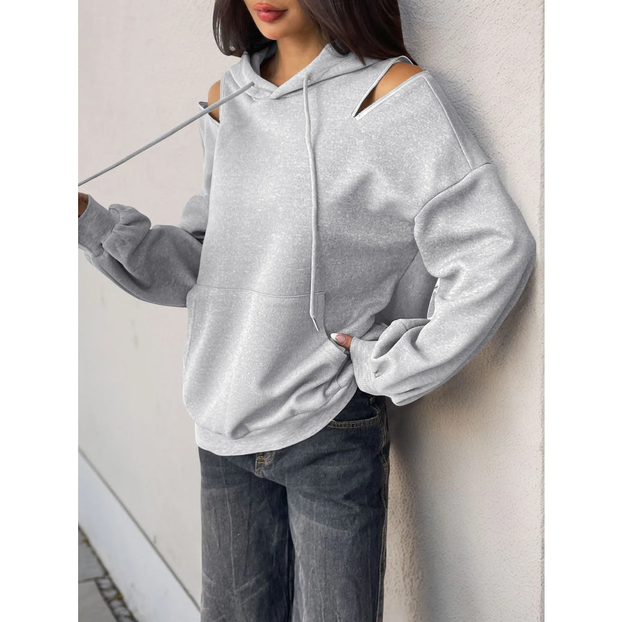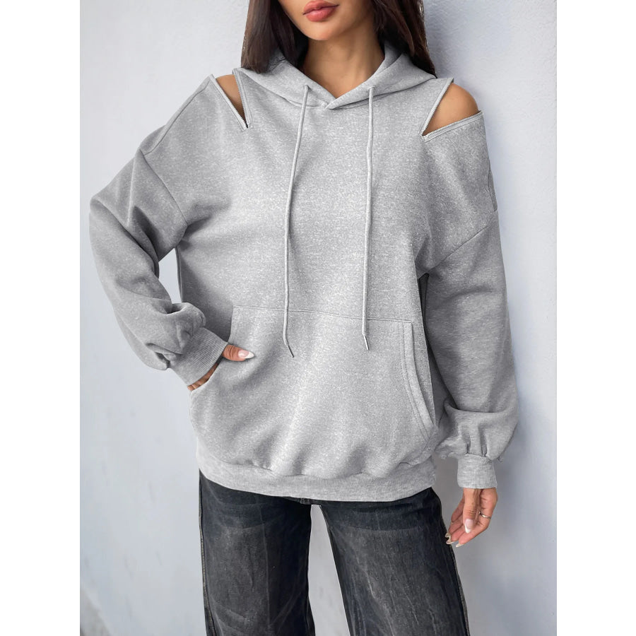 • Features:Oversized,Cutout,Drawstring,Pocketed