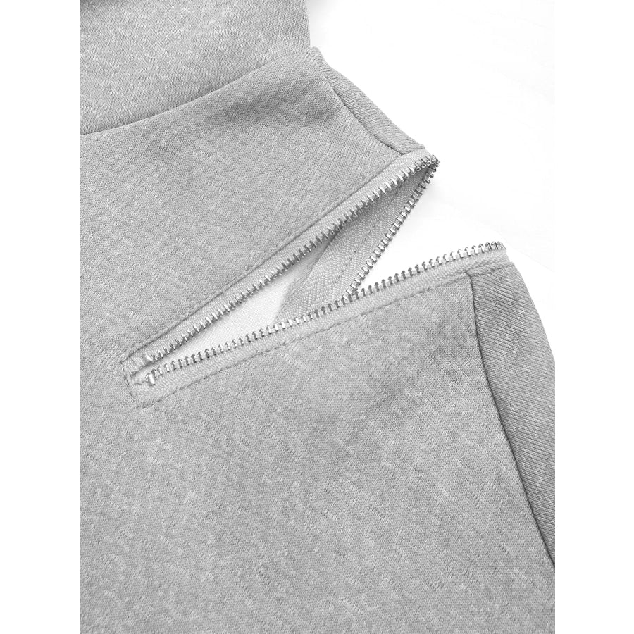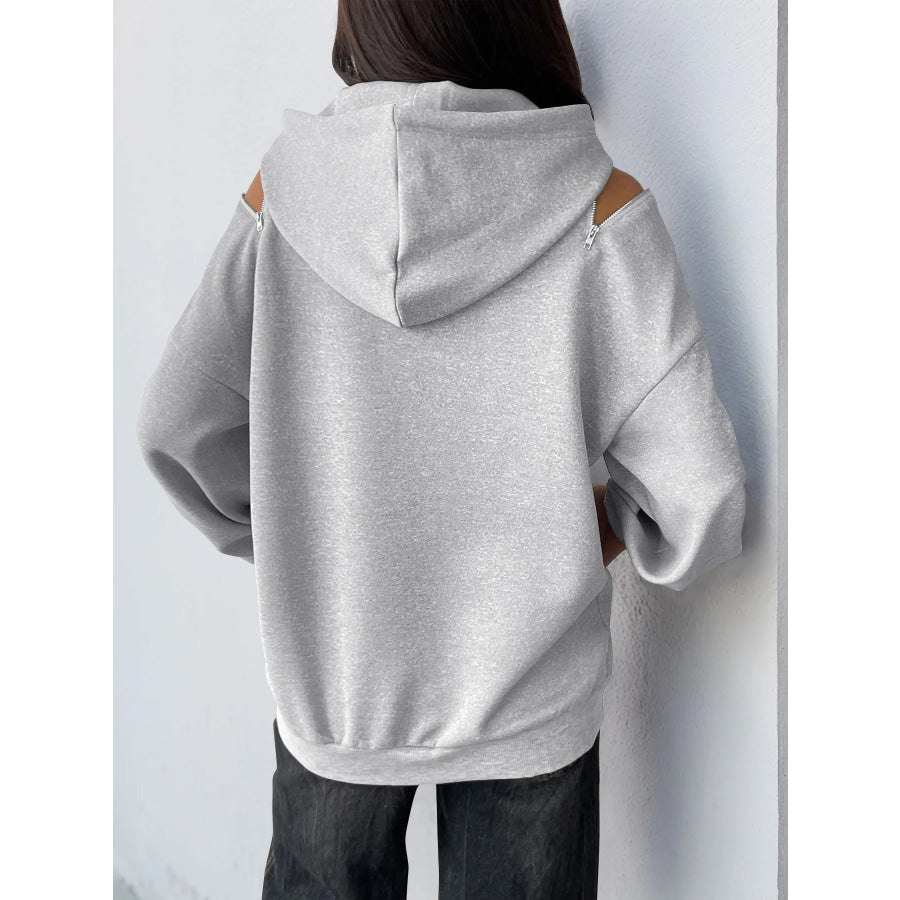 Drawstring Zip Detail Cold Shoulder Hoodie