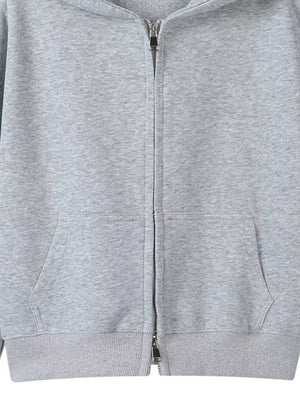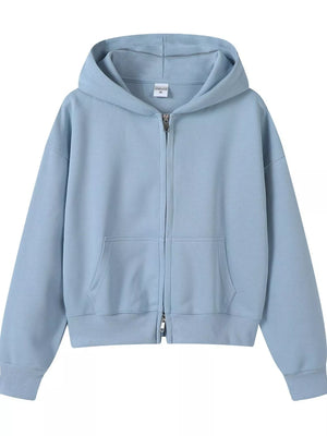 Full Size Casual Zip-Up Long Sleeve Hoodie Plus Size