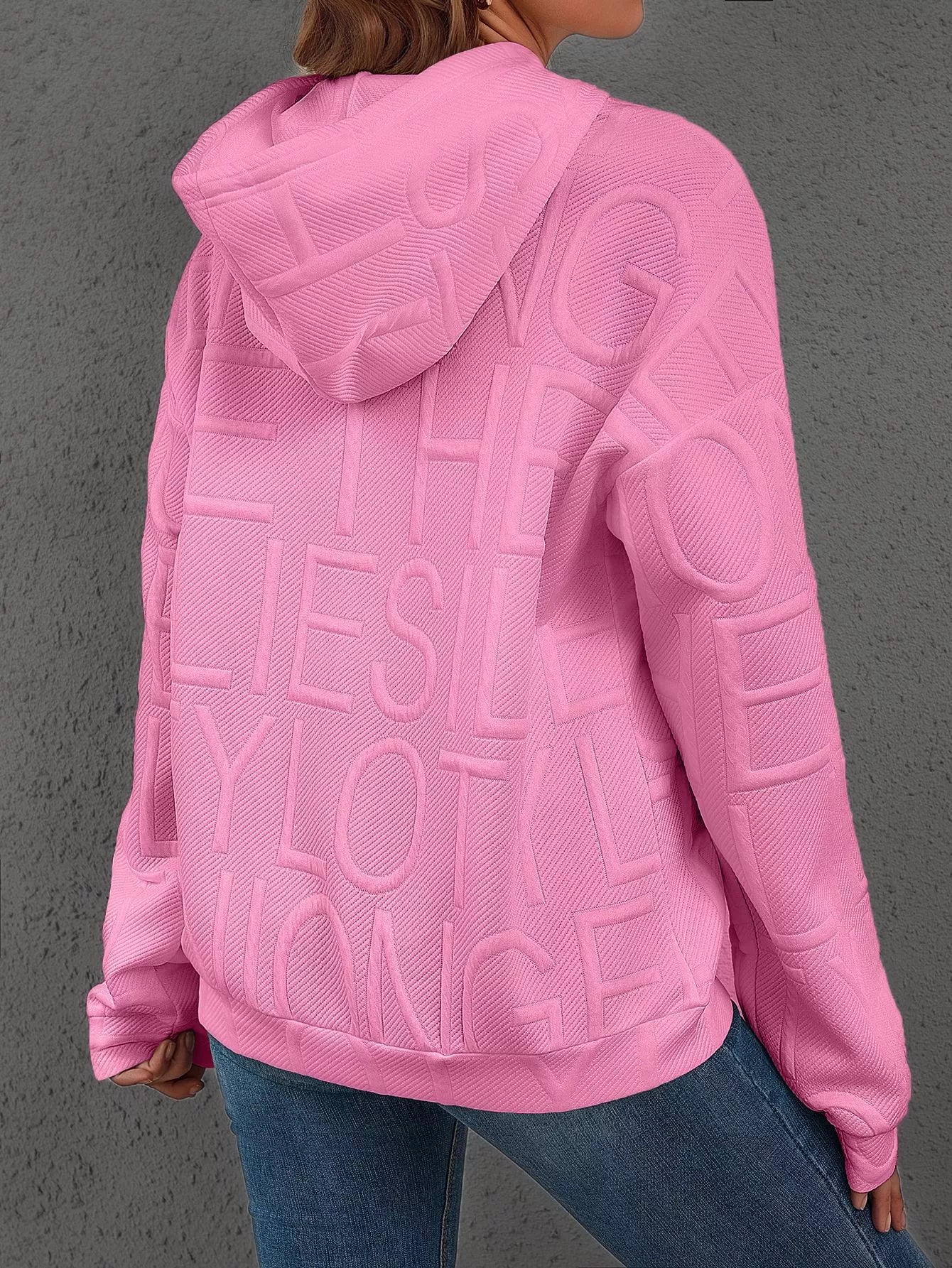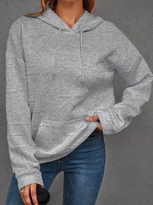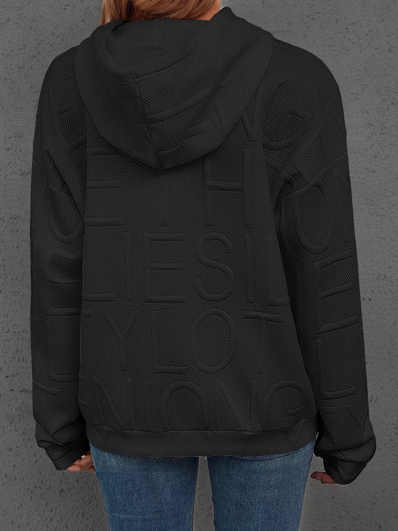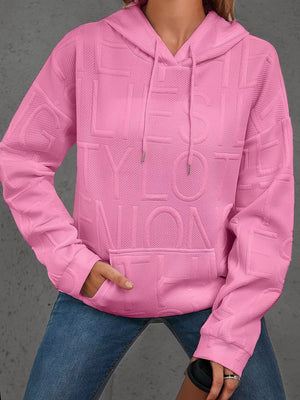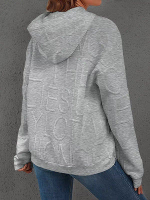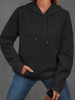 Full Size Textured Embossed Long Sleeve Hoodie Plus Size
