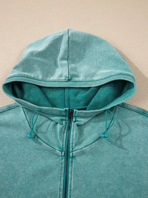 Half Zip Kangaroo Pocket Mineral Wash Baggy Hoodie