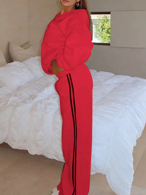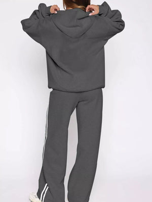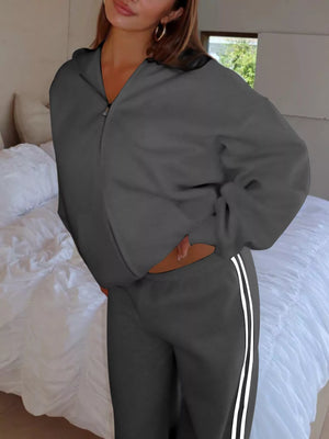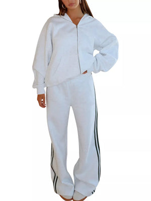 Zip Up Hoodie and Striped Pants Set