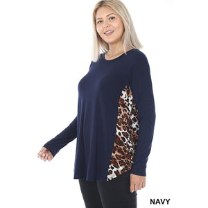 CONTRAST SIDE PANEL LEOPARD PRINT LONG SLEEVE TOP