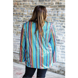 Stand out in any crowd in our turquoise serape sequin cape!