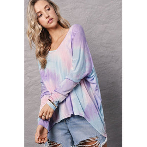 Wide cut v-neck pullover cut in soft, lightweight fabrication for a comfortable fit featuring a multi coloured tie-dye detail in relaxed silhouette. Our Carrie V-neck top is sure to be your new favorite top!