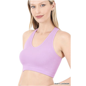 Ribbed Cropped Racerback Tank Top - Dusty Lavender