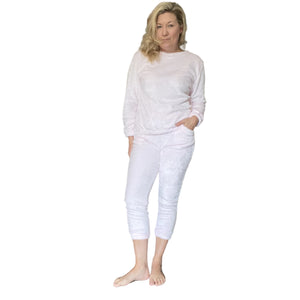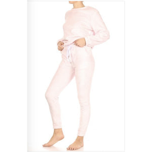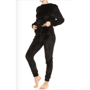 Womens Solid 2-piece Double Plush Fur pajama sets with long sleeve top and matching Joggers pants with pockets